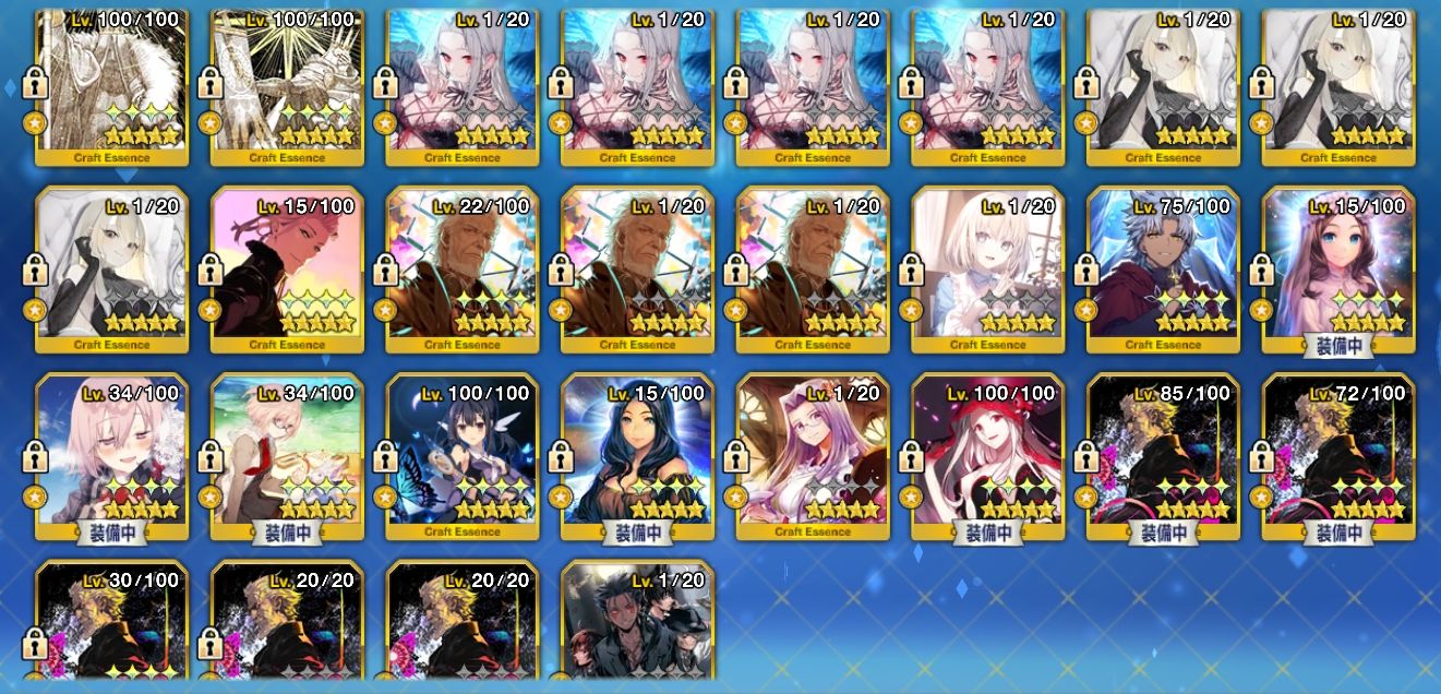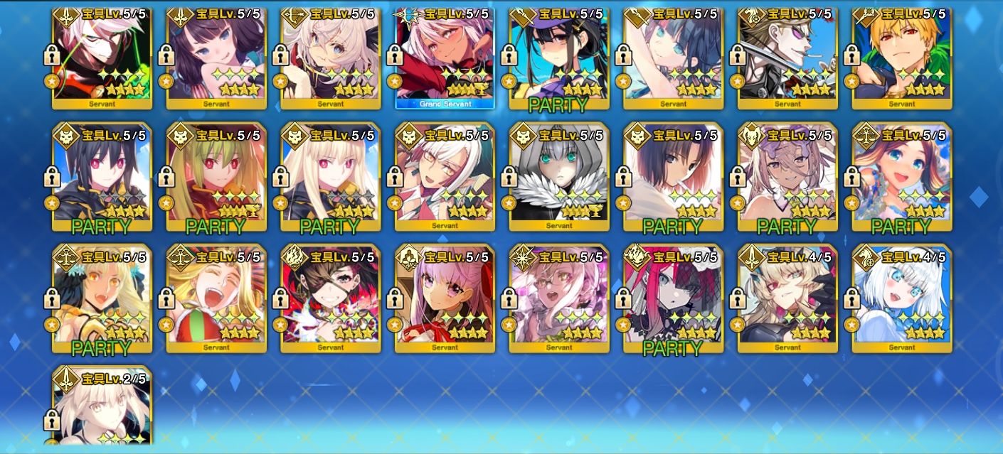 アカウント特定防止といった観点から主なサーヴァントを抜粋して掲載しております。