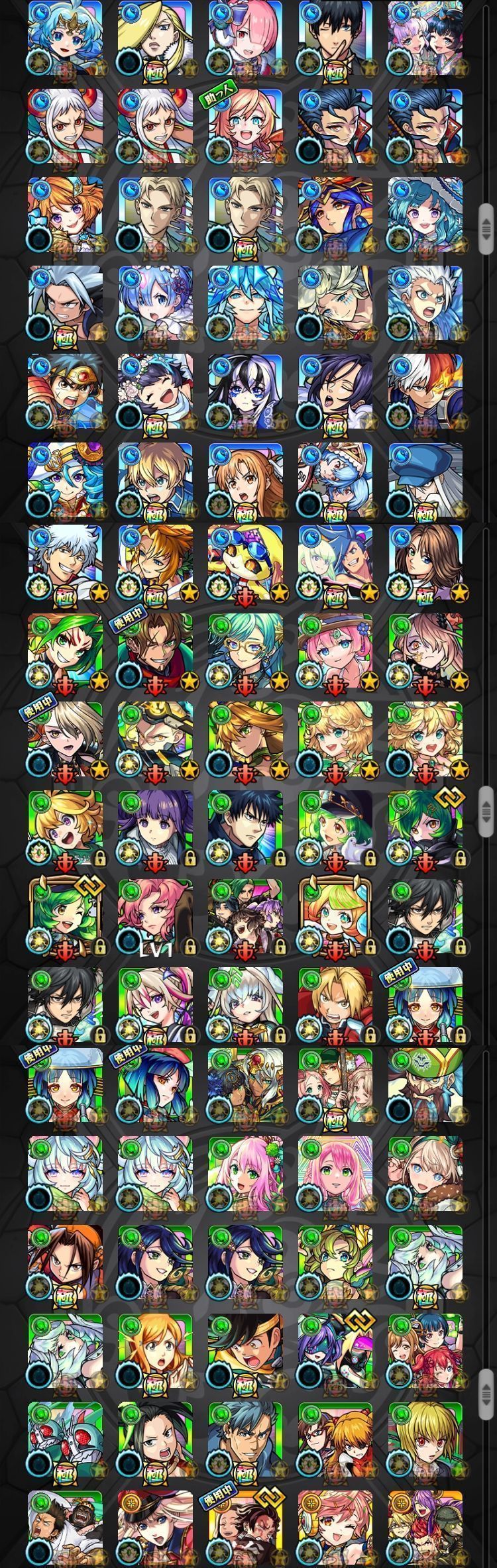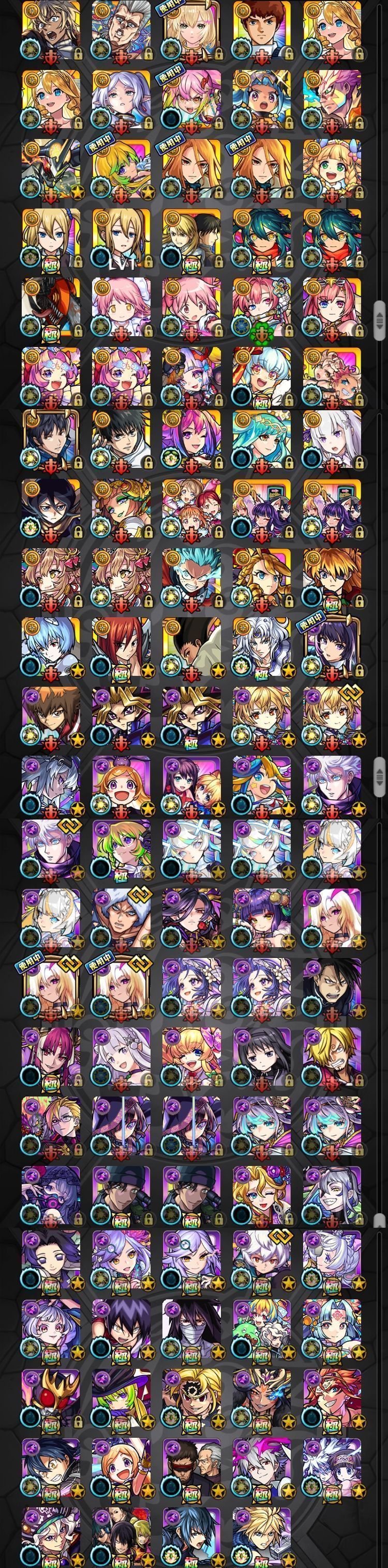 アカウント特定防止といった観点から、主なモンスターを抜粋して記載させていただいております。