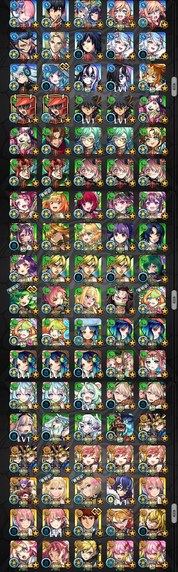 アカウント特定防止といった観点から、主なモンスターを抜粋して記載させていただいております。