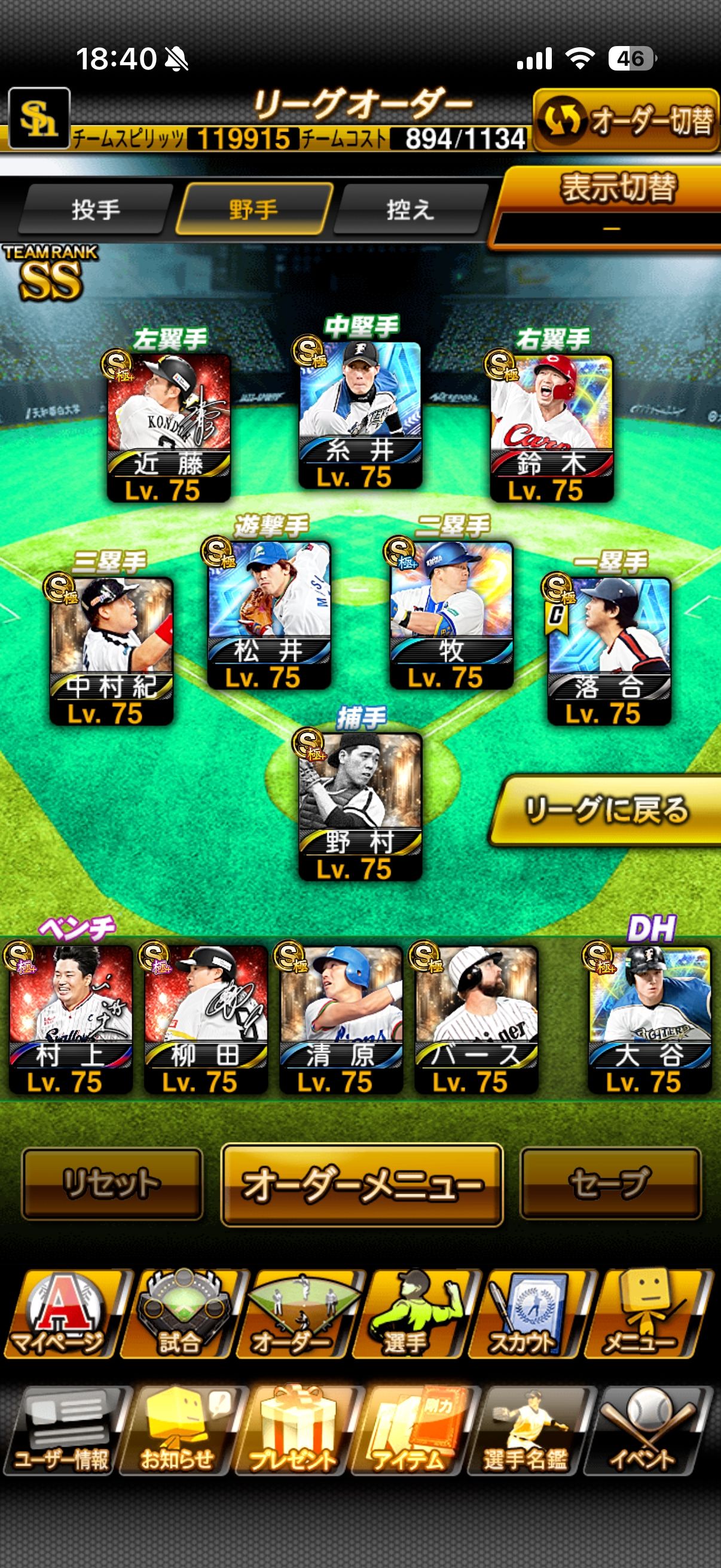 リーグオーダーの最大スピリッツ119915です。