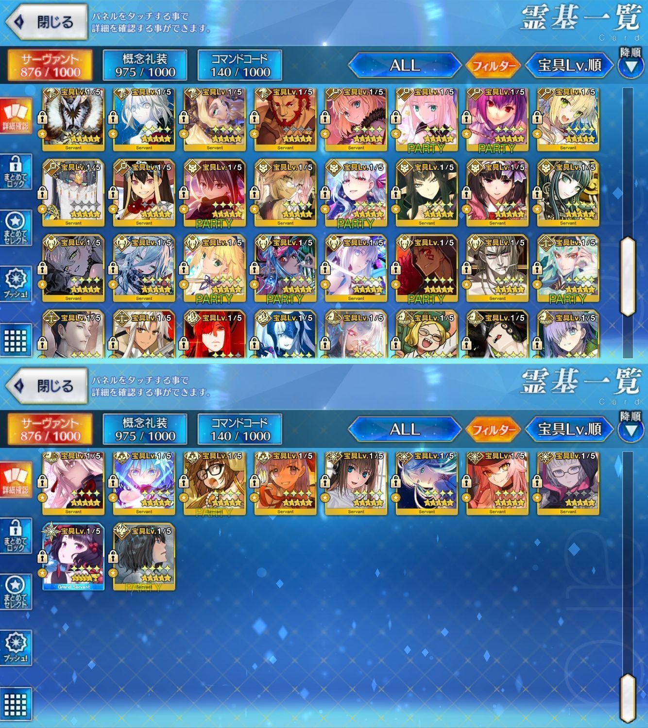 星5サーヴァントの数は累計入手数です。