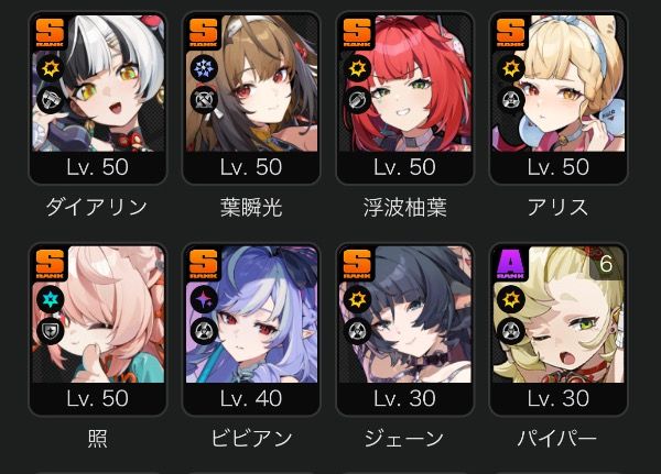 所持キャラ 柚葉 アリス ビビアン 照 葉瞬光 ジェーン ダイアリン その他恒常