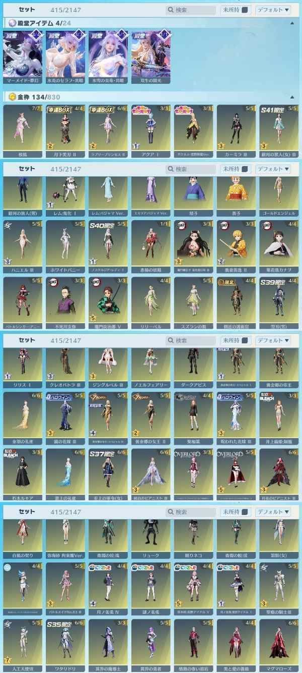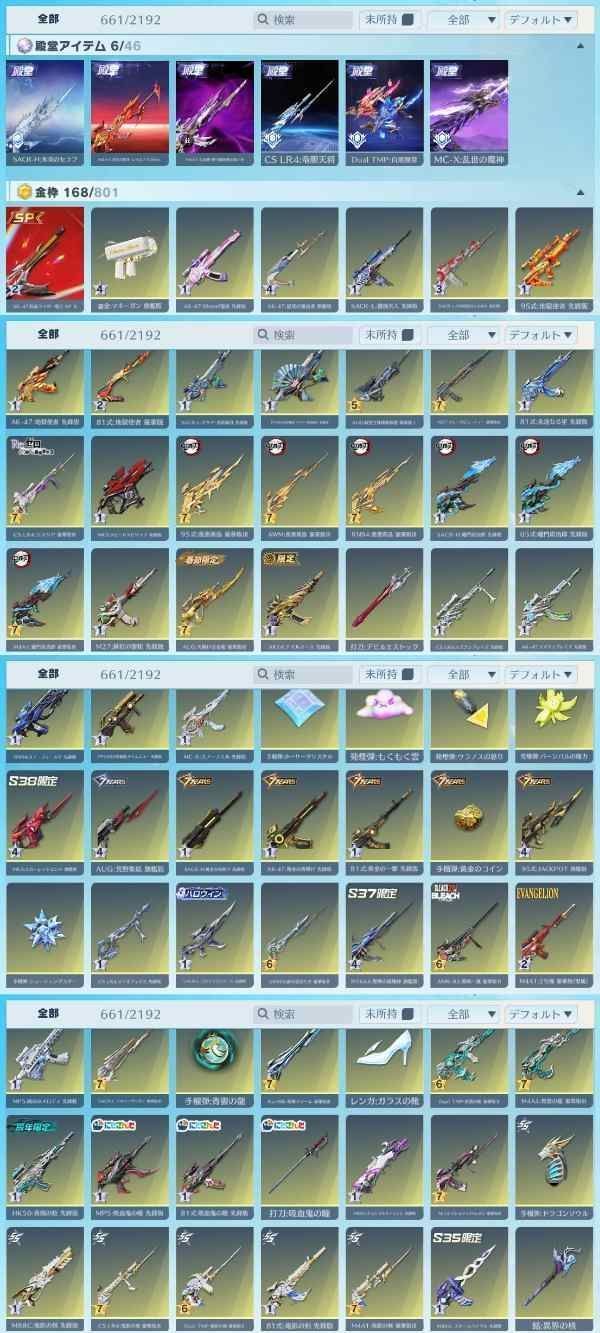 アカウント特定防止といった観点から主なスキンを抜粋して掲載しております。