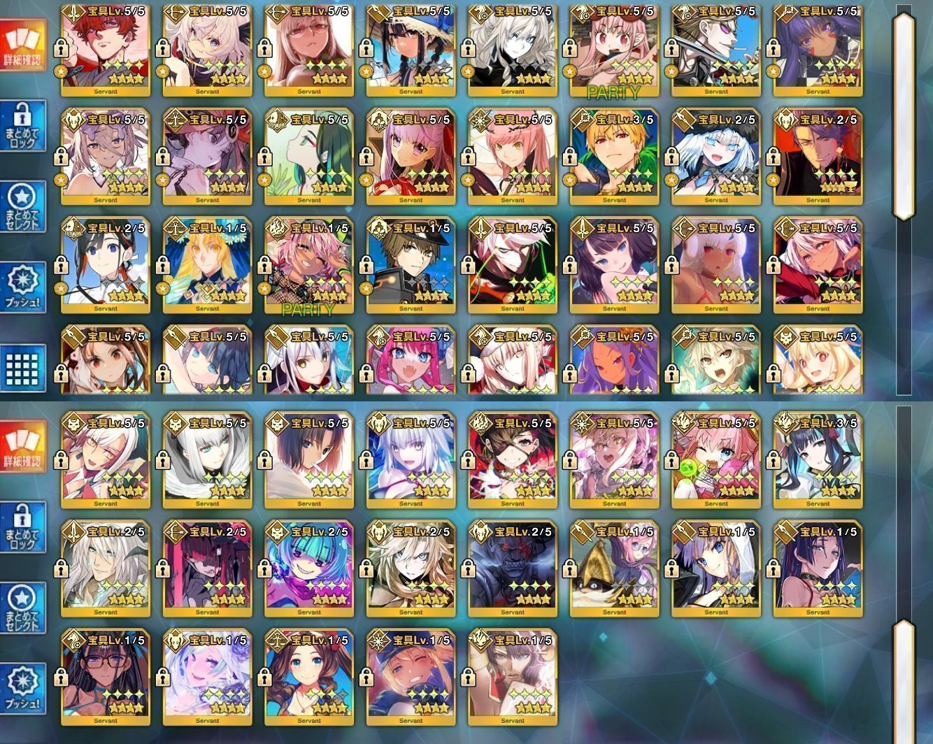 アカウント特定防止といった観点から主なサーヴァントを抜粋して掲載しております。