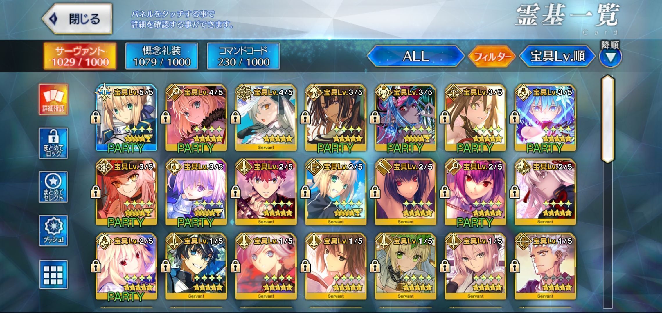 重複分は宝具強化に使用しているため、累計入手数=★5サーヴァントの宝具レベル合計値となります。