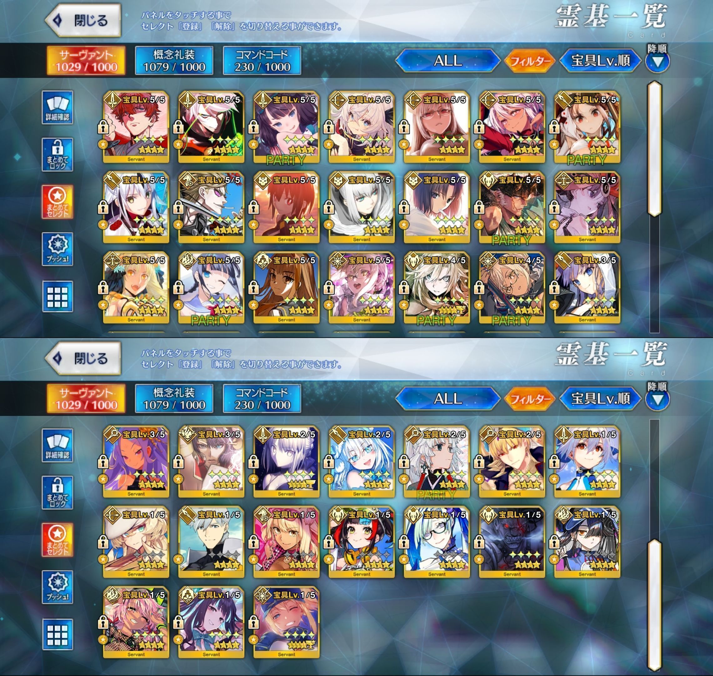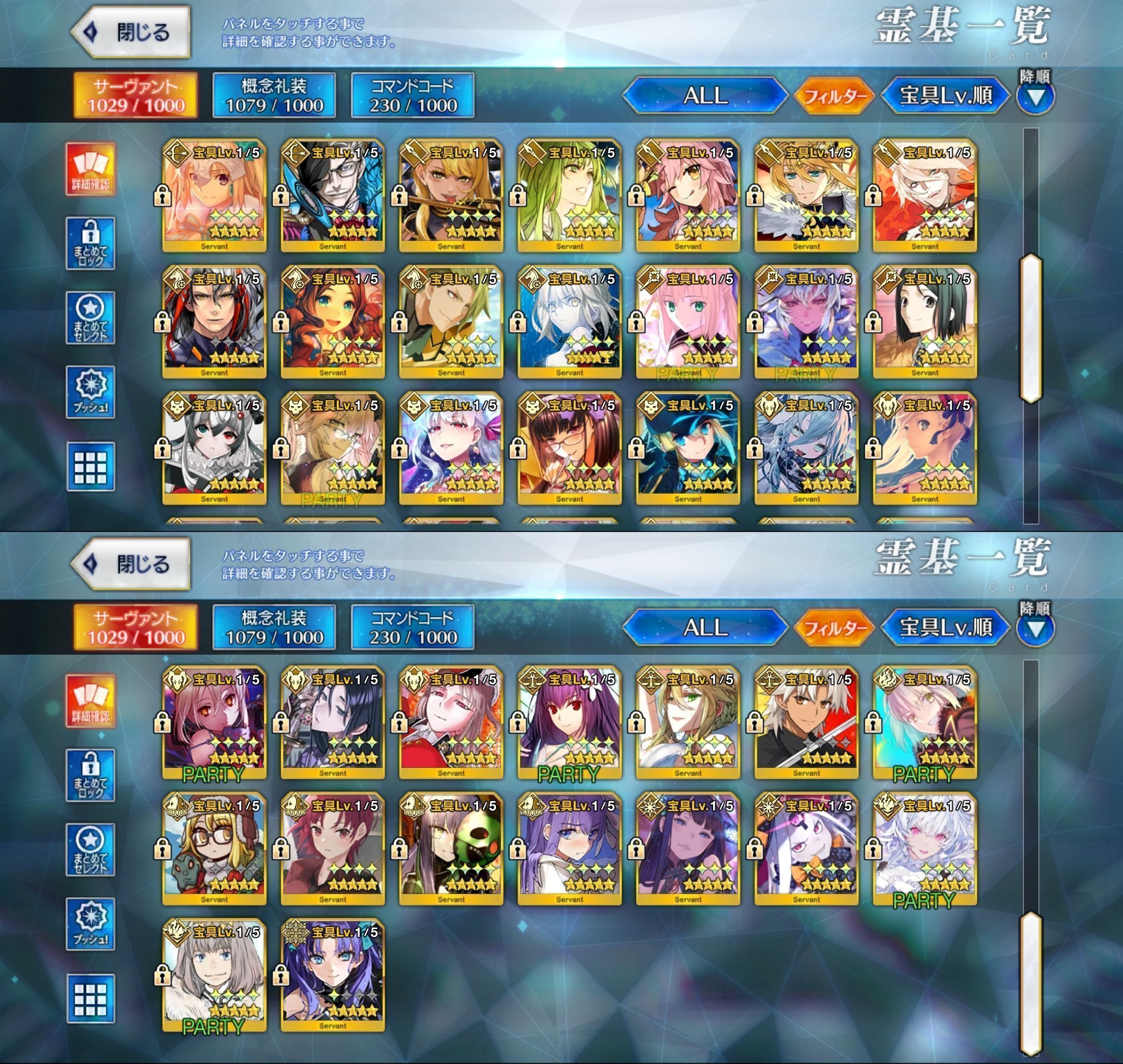 星5サーヴァントの数は累計入手数です。