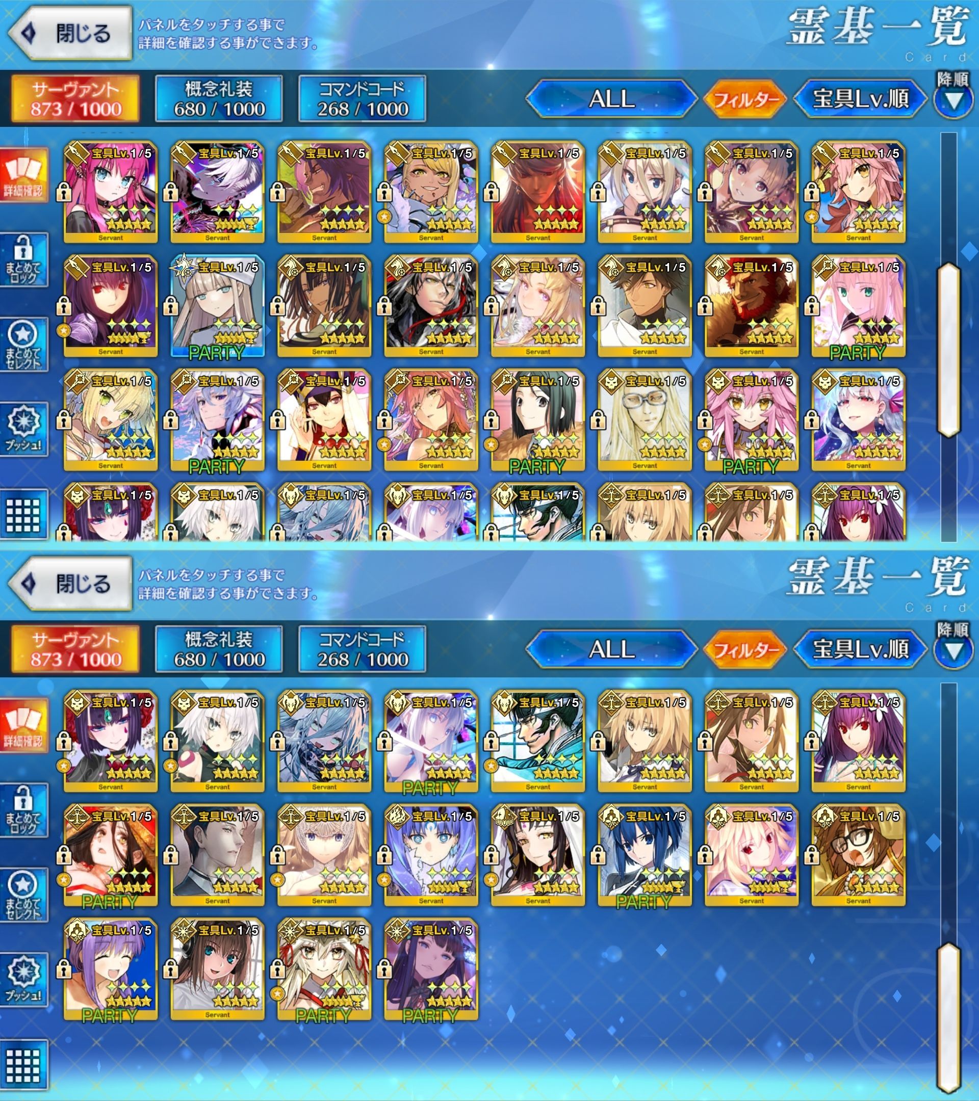 星5サーヴァントの数は累計入手数です。