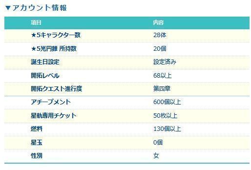 下記のようなキャラクター・光円錐を所持しております。(一部抜粋)