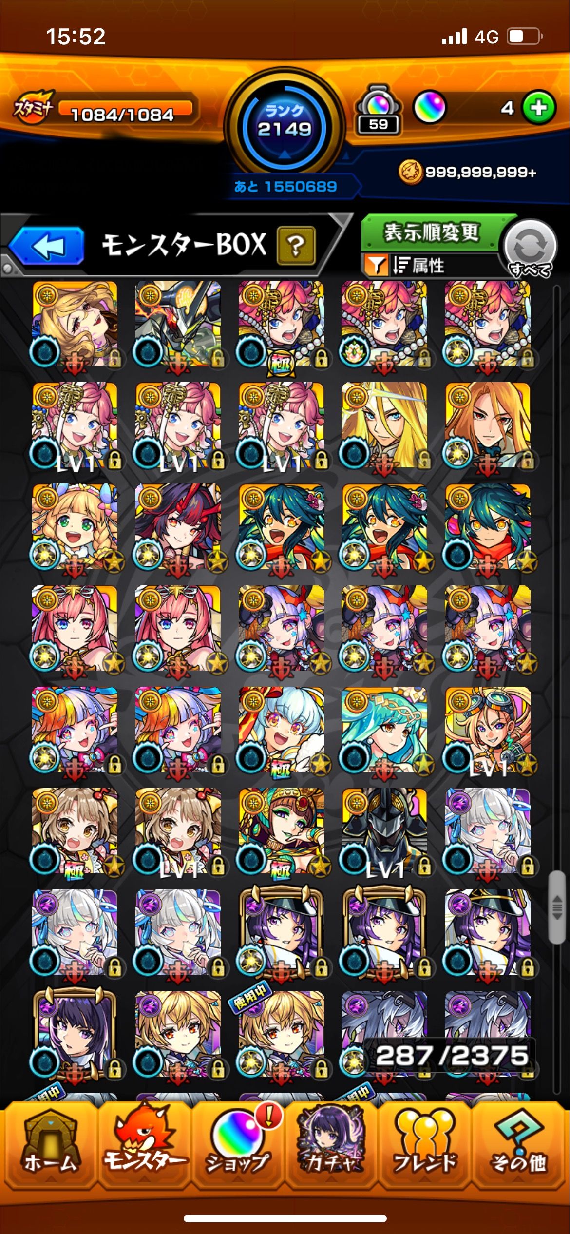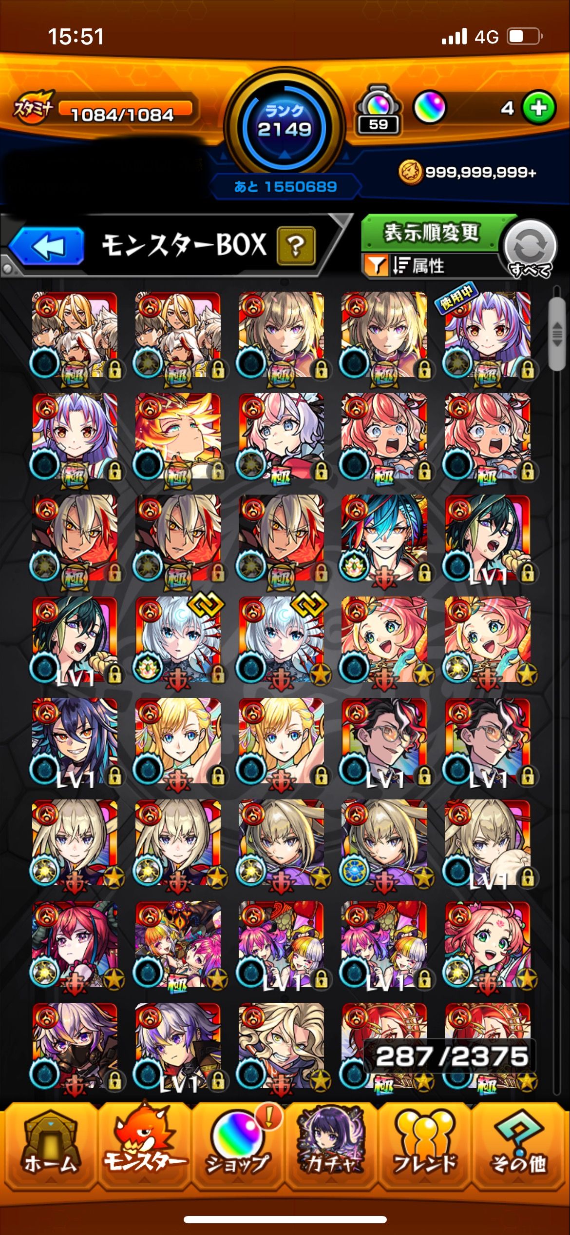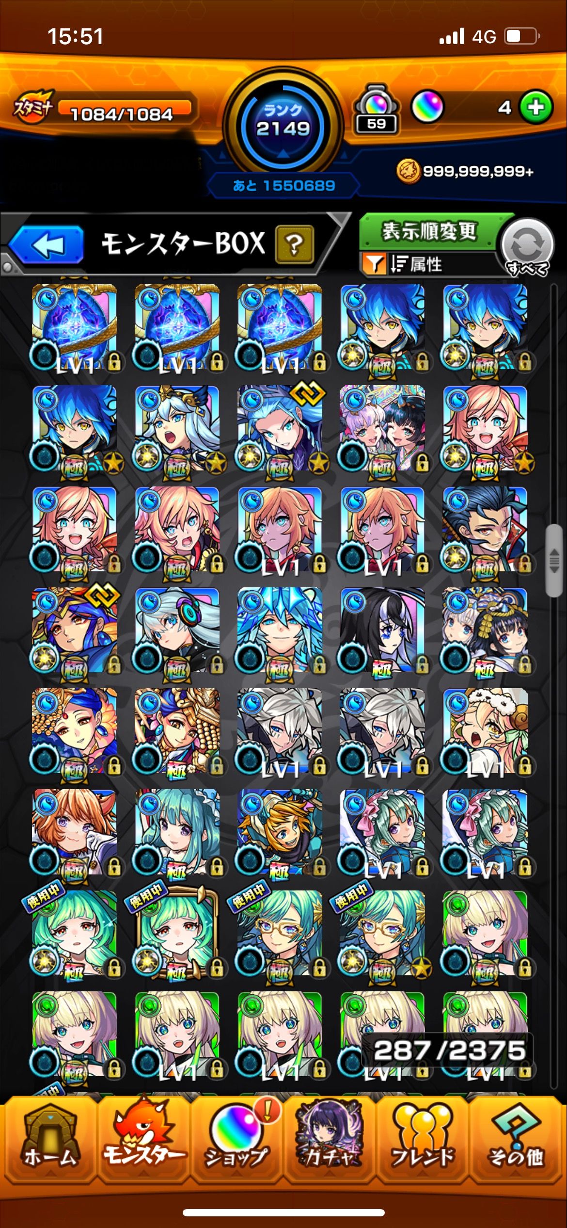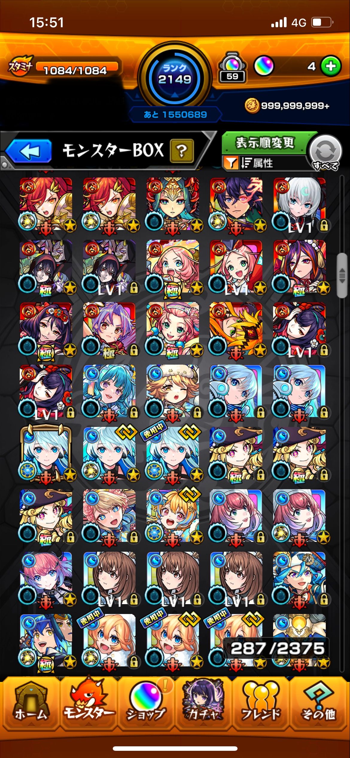 こちらは長期間プレイしてきたモンスターストライクの完全引退アカウントです。