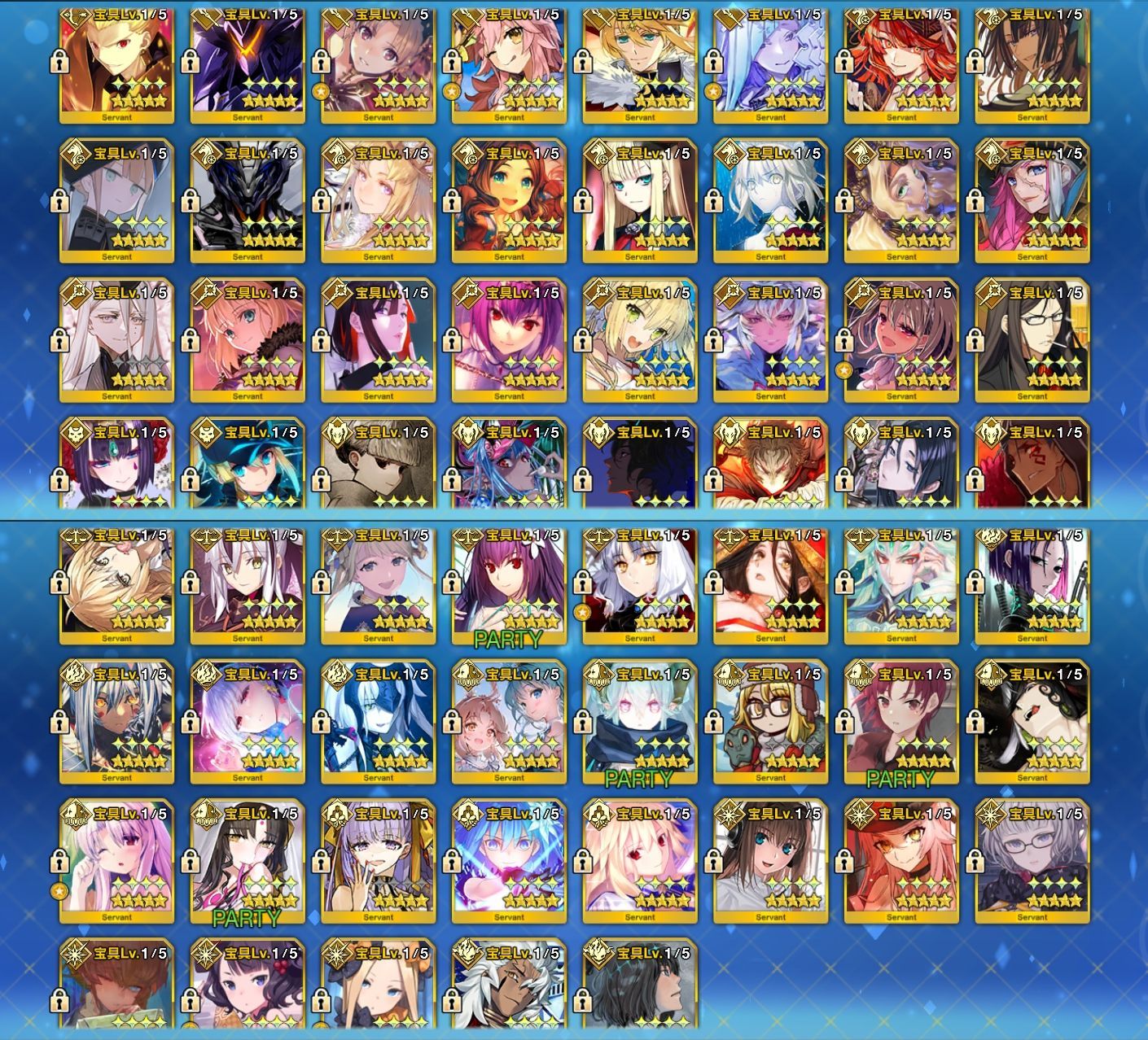 アカウント特定防止といった観点から主なサーヴァントを抜粋して掲載しております。