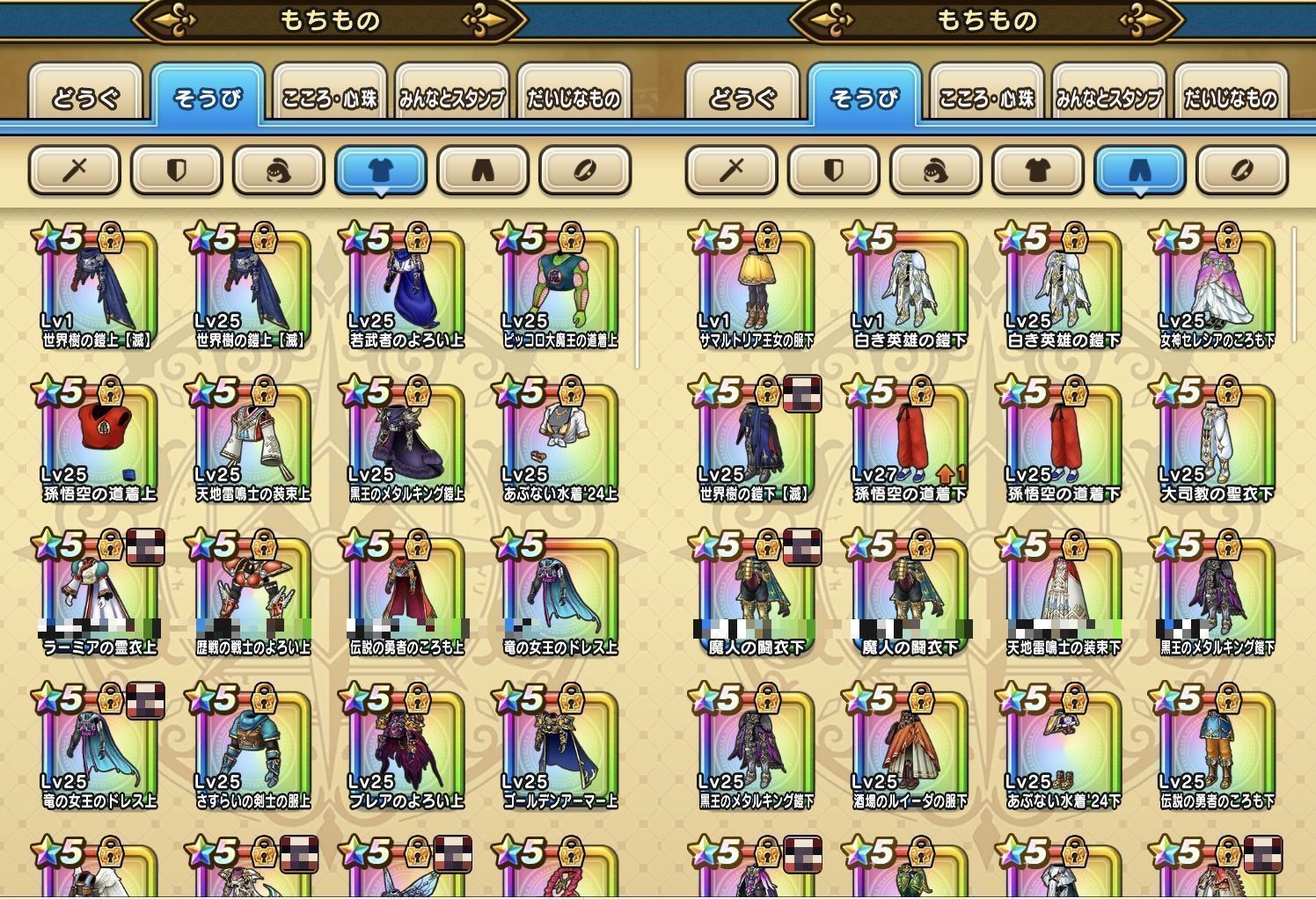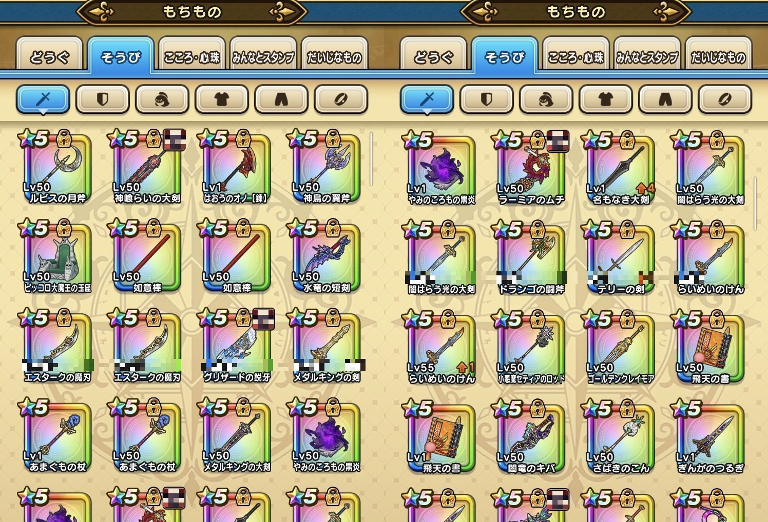 下記のようなそうびを所持しております。(一部抜粋)