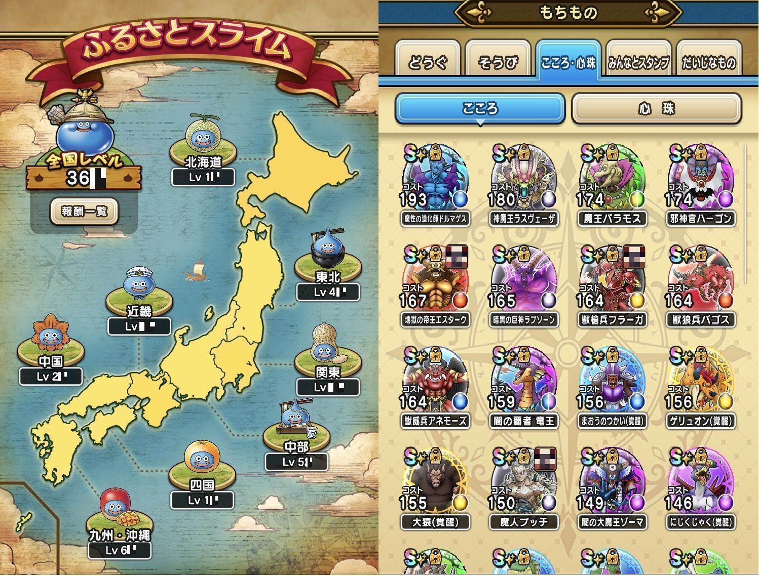 アカウント特定防止といった観点から、主な武具・こころを抜粋して記載させていただいております。