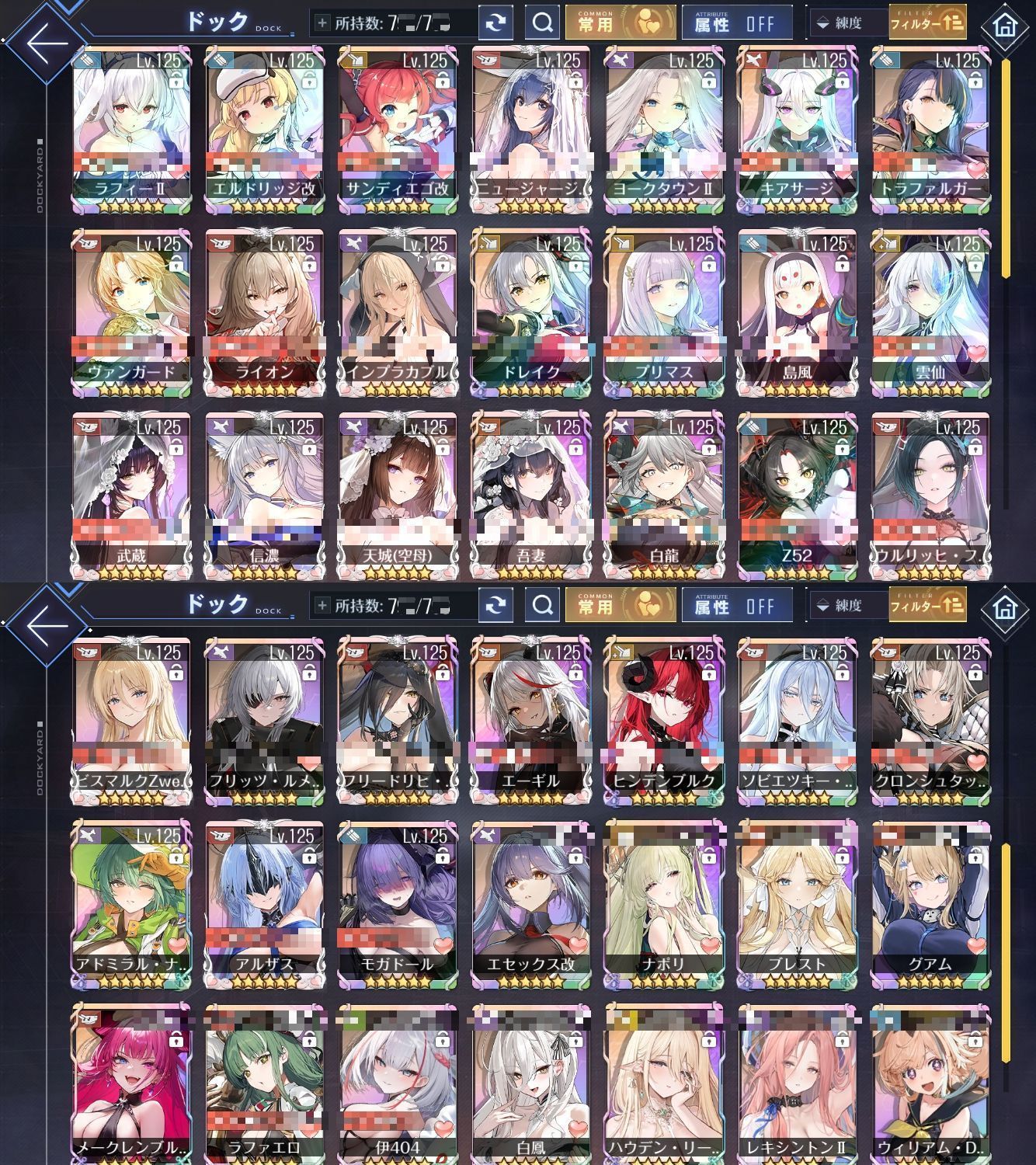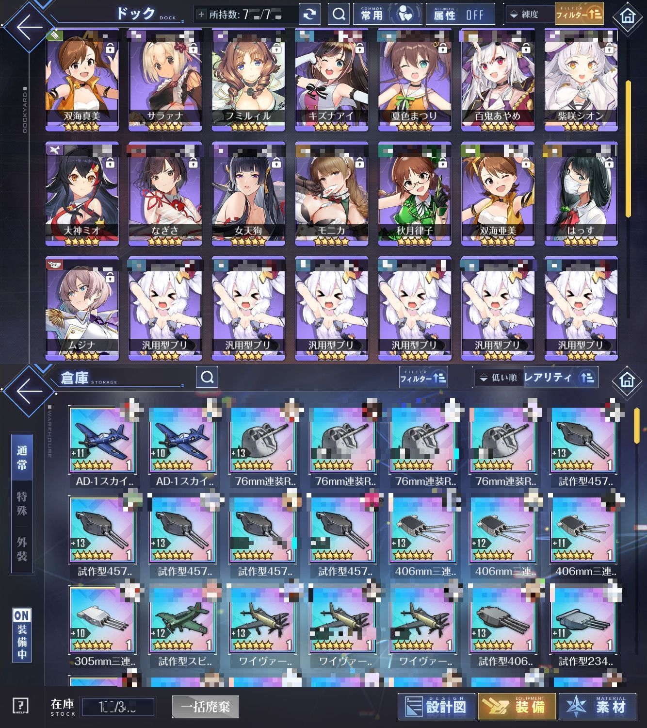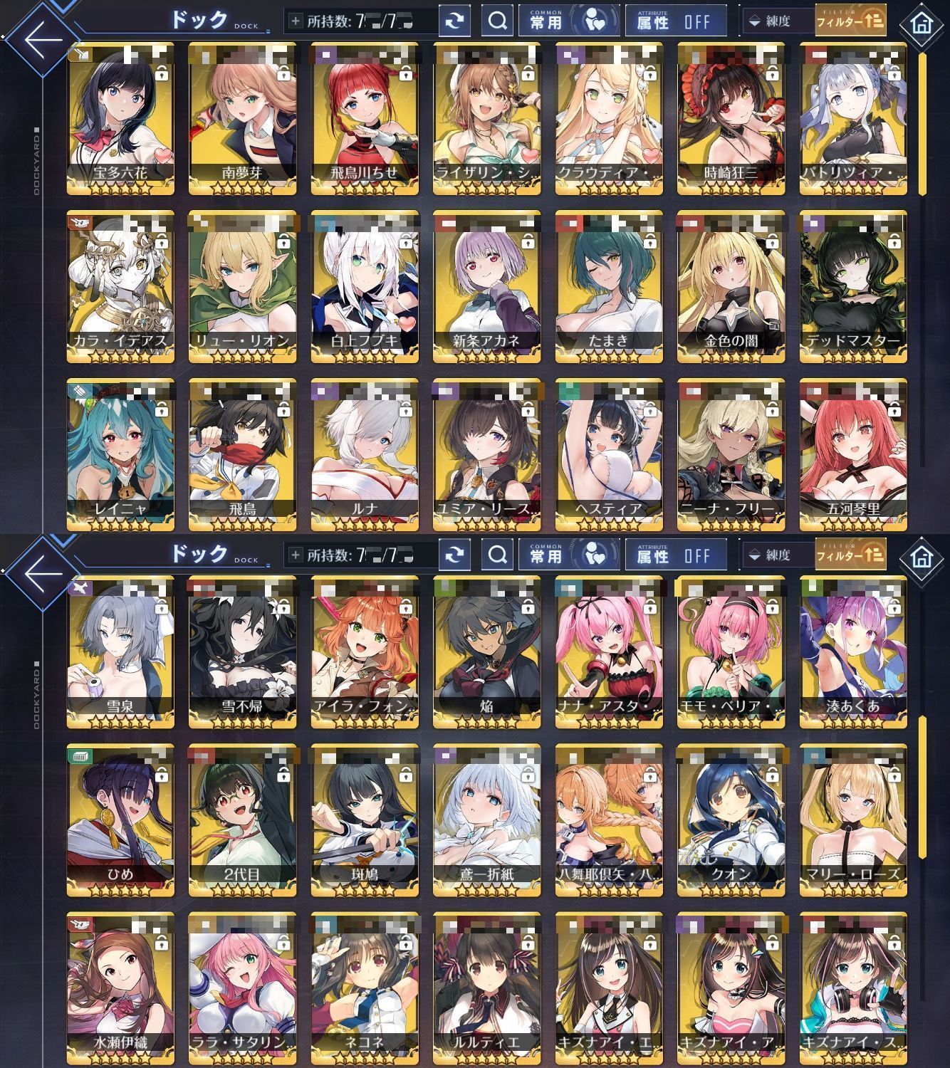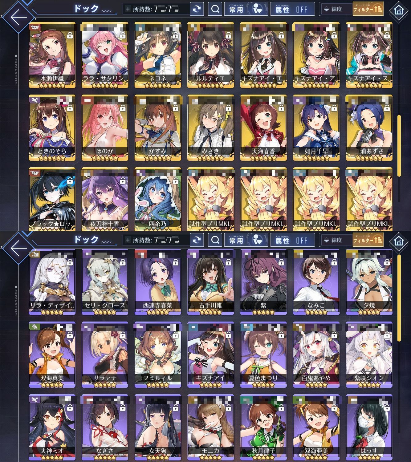 アカウント特定防止といった観点から、主なキャラクター・装備・衣装を抜粋して記載させていただいております。