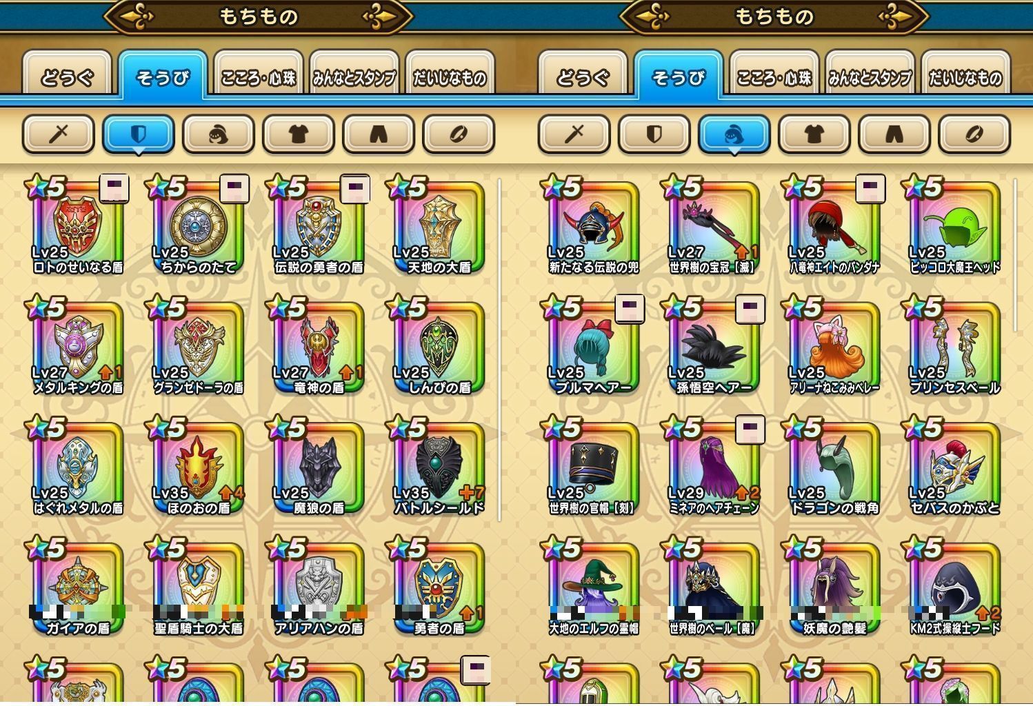 アカウント特定防止といった観点から、主な武具・こころを抜粋して記載させていただいております。
