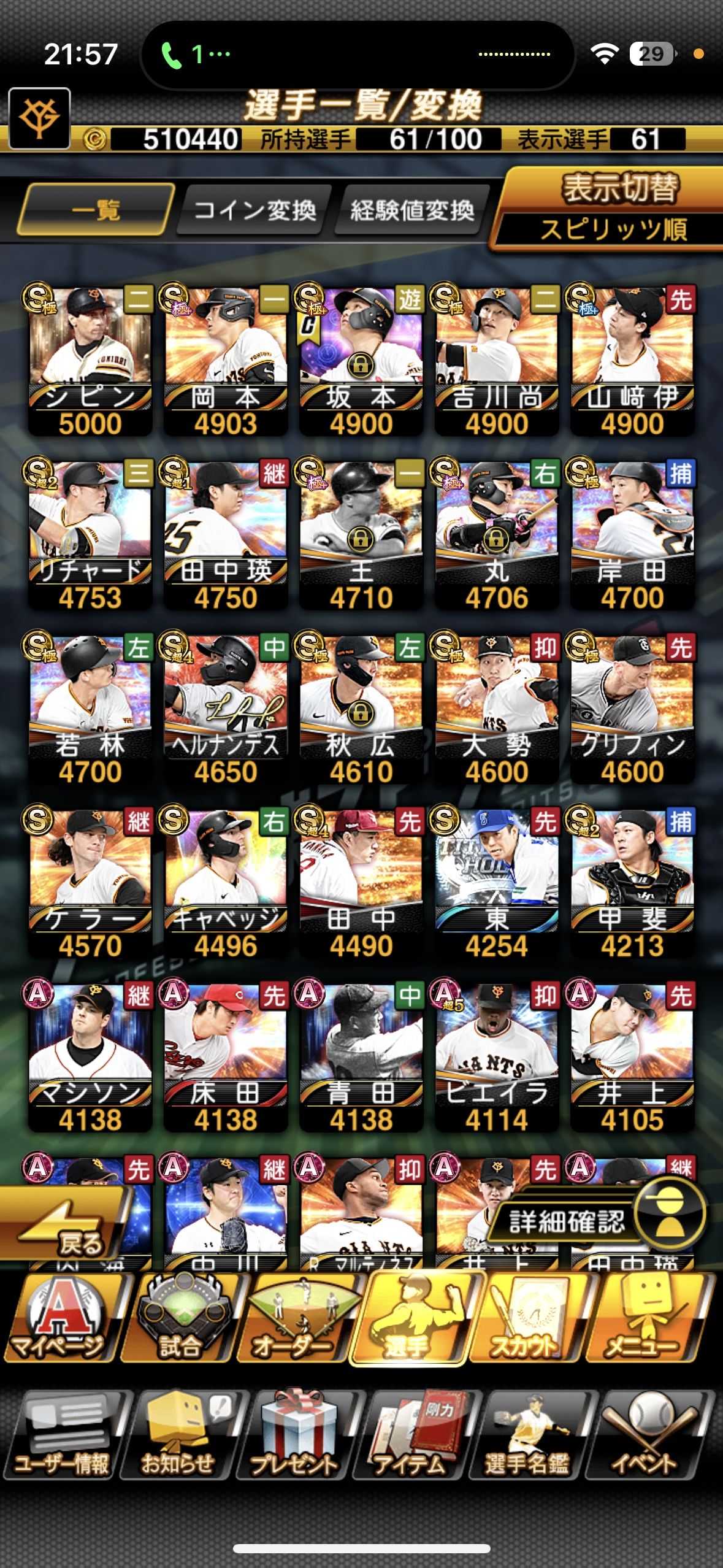 | ゲーム名 | プロスピA |