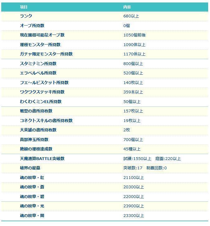 アカウント特定防止といった観点から、主なモンスターを抜粋して記載させていただいております。