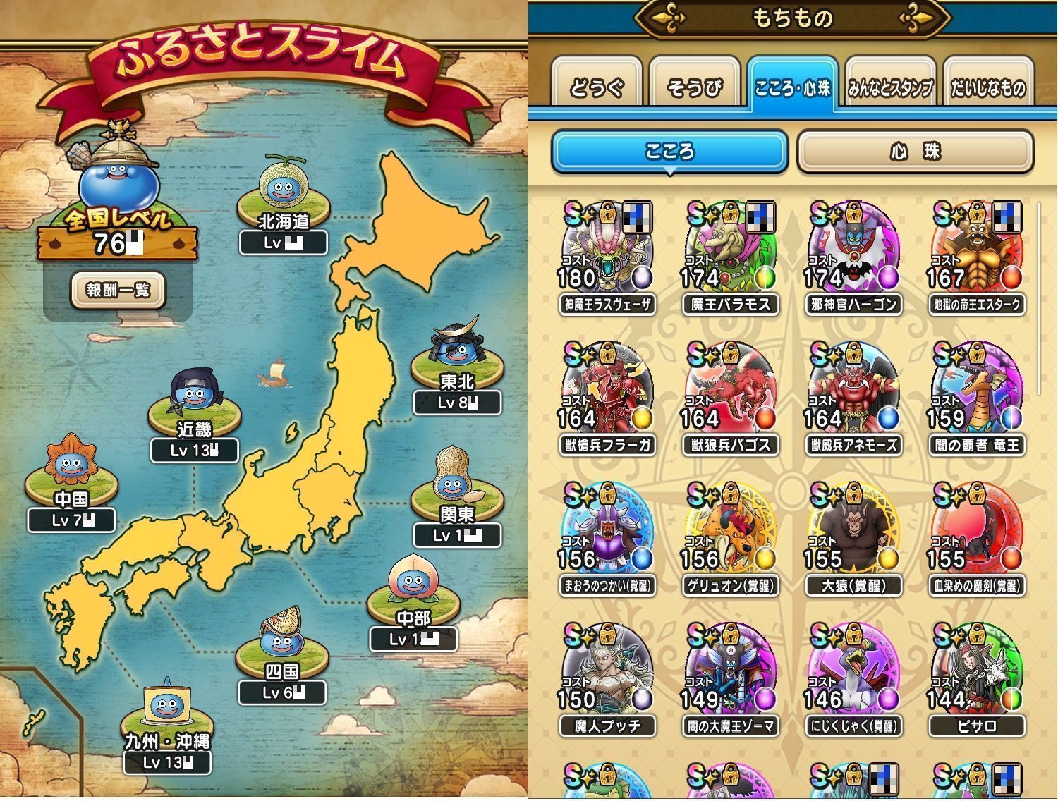 アカウント特定防止といった観点から、主な武具・こころを抜粋して記載させていただいております。