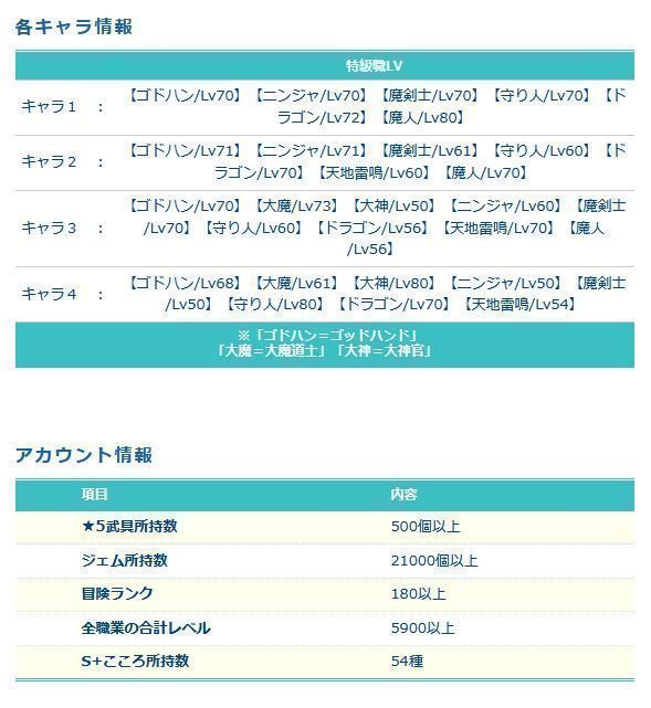 ※冒険ランクなども一部ぼかして記載しています。