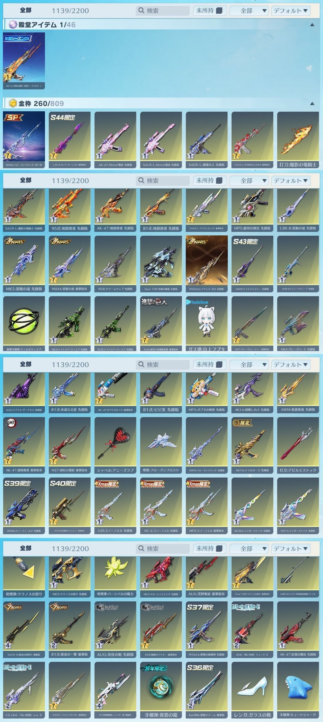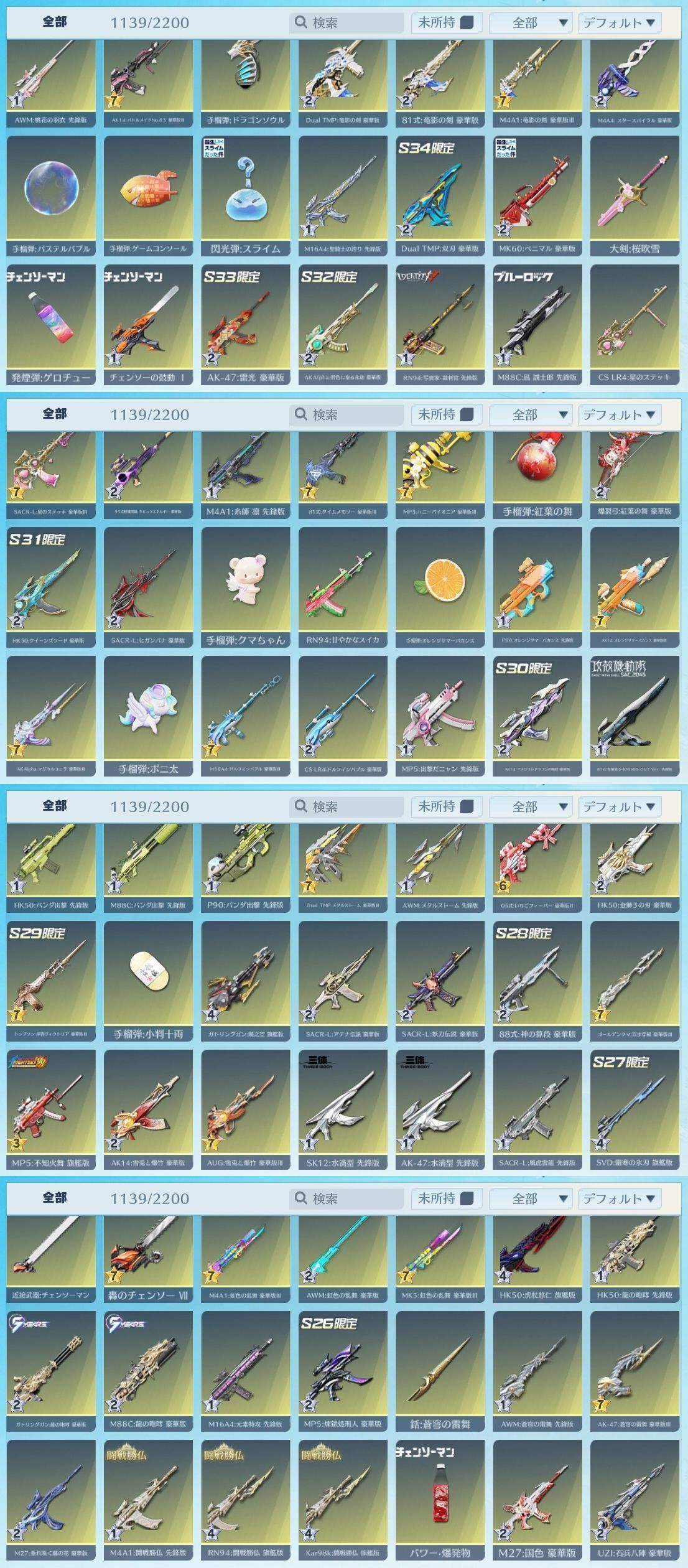 アカウント特定防止といった観点から主なスキンを抜粋して掲載しております。