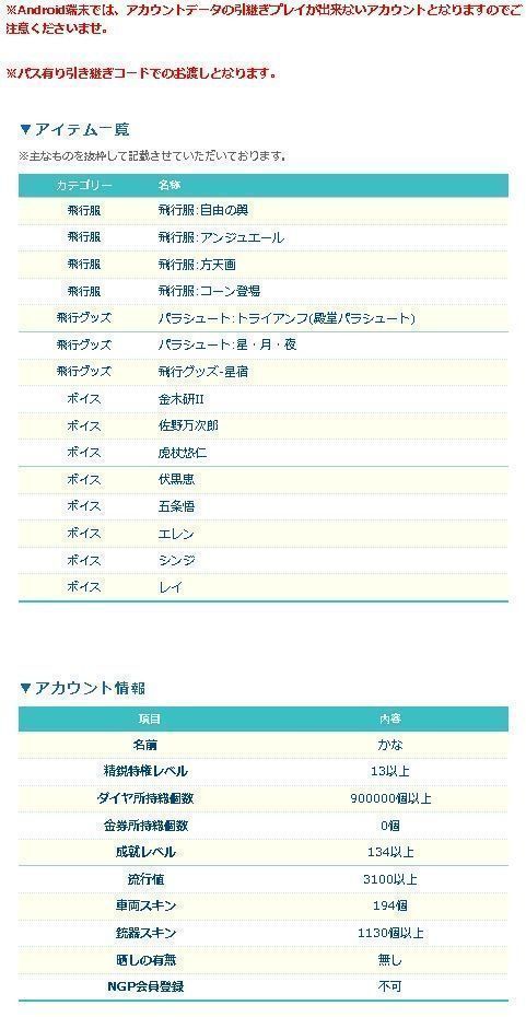 引退した一般プレイヤーから、直接マツブシが買取した廃課金アカウントとなります!