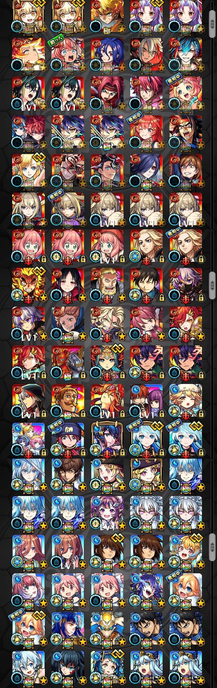 アカウント特定防止といった観点から、主なモンスターを抜粋して記載させていただいております。