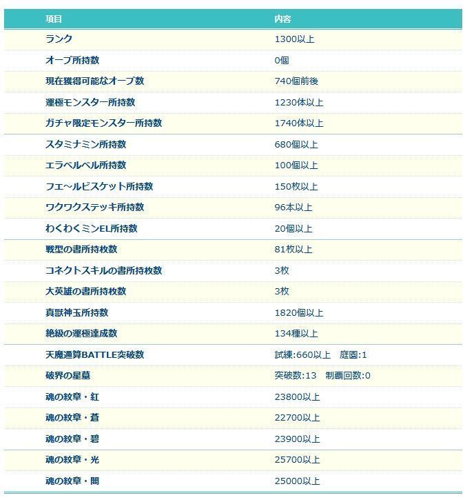 アカウント特定防止といった観点から、主なモンスターを抜粋して記載させていただいております。