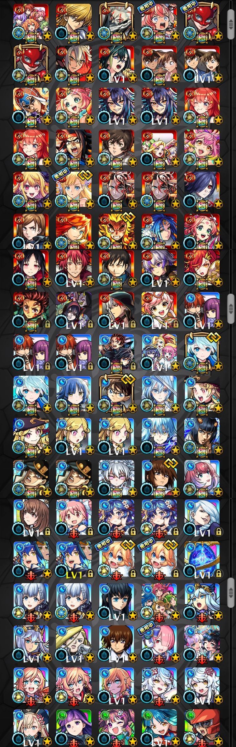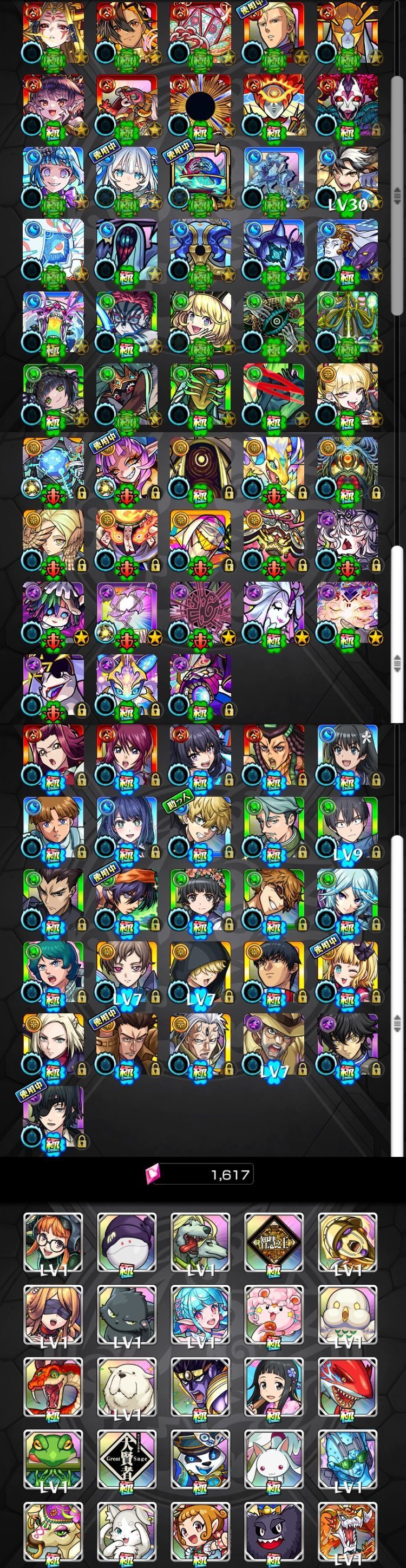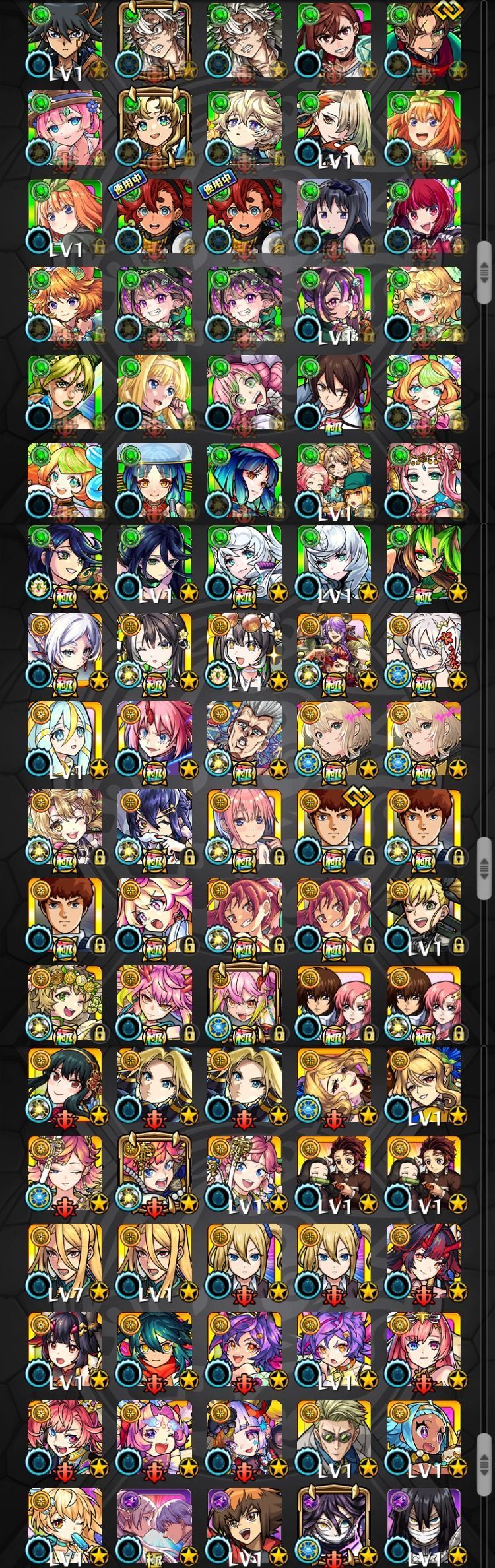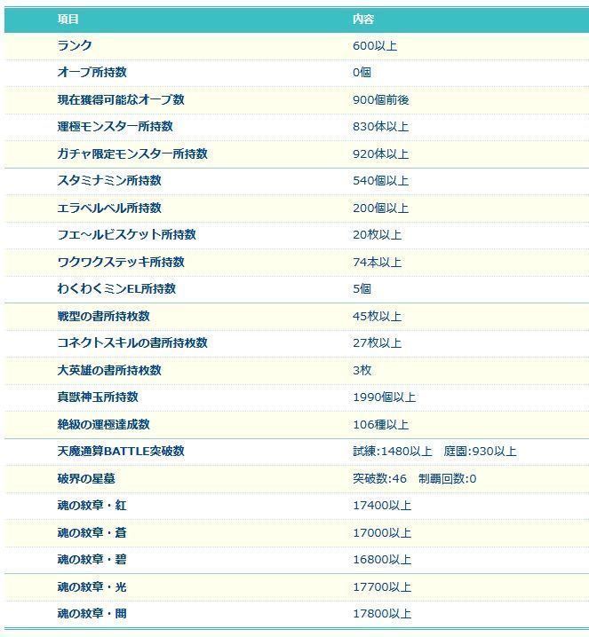 アカウント特定防止といった観点から、主なモンスターを抜粋して記載させていただいております。
