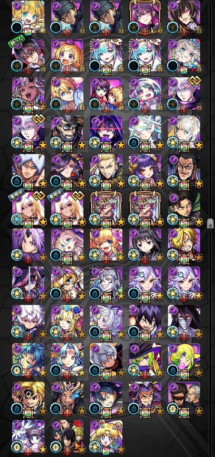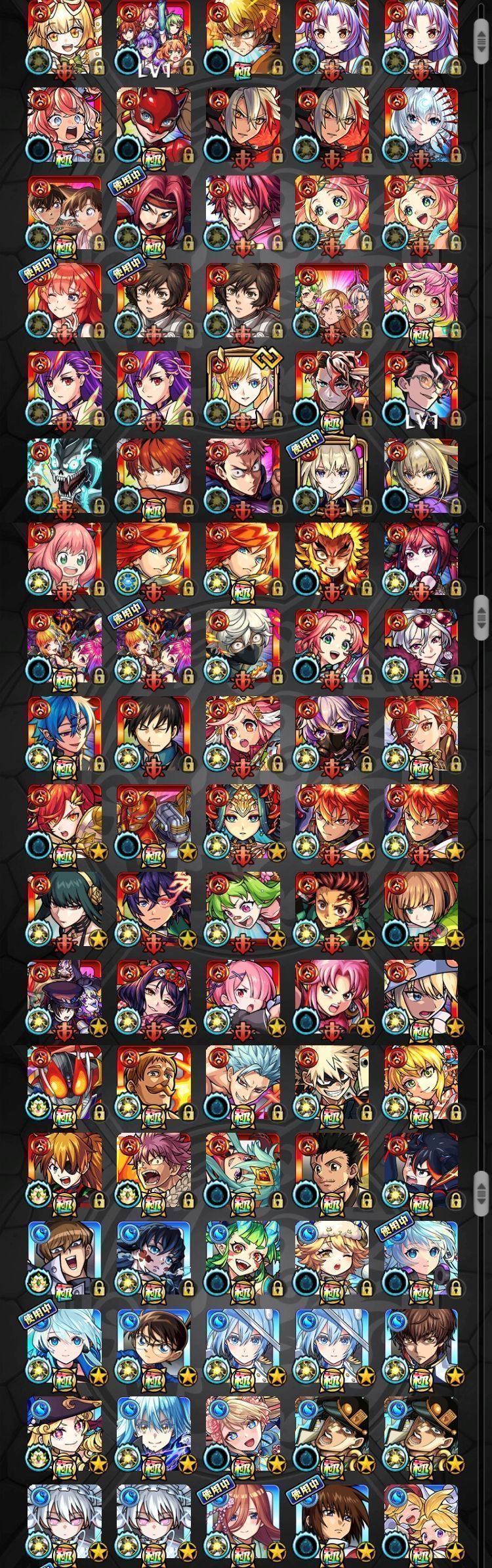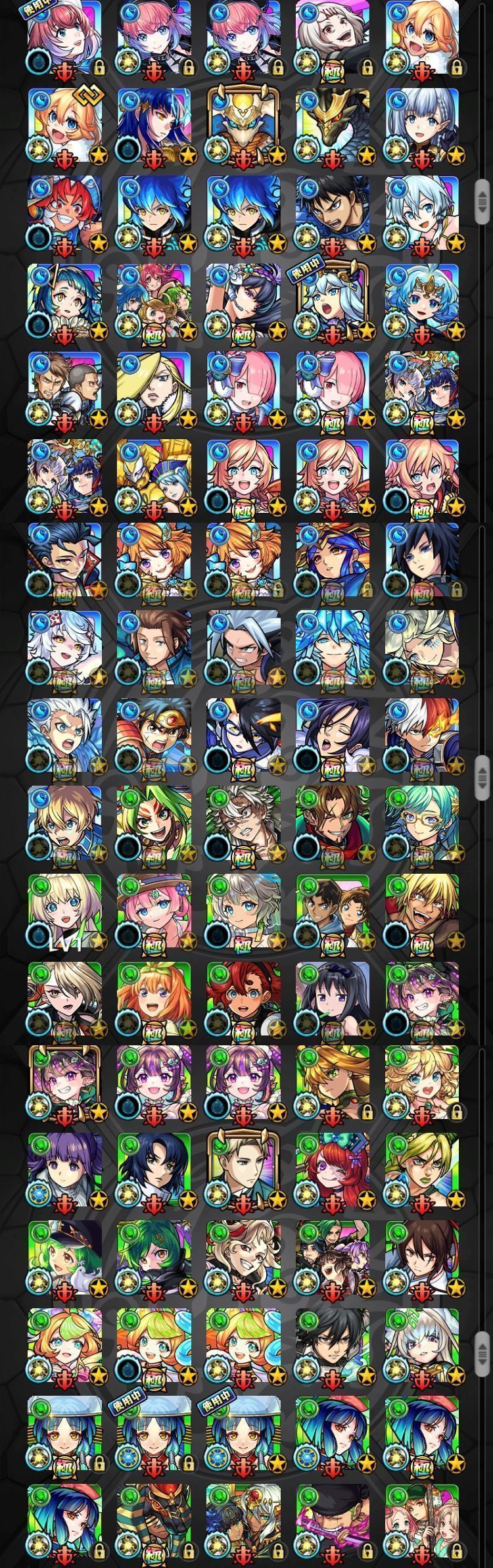 アカウント特定防止といった観点から、主なモンスターを抜粋して記載させていただいております。
