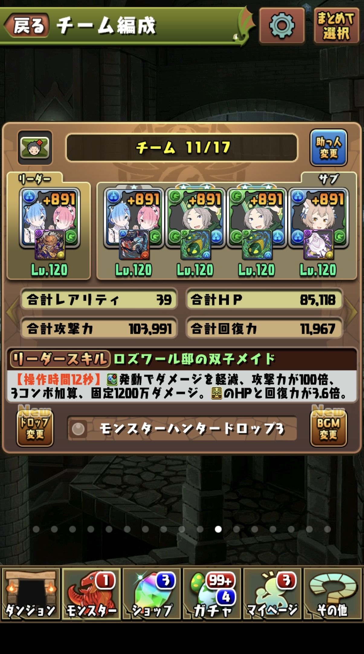 現環境最新の高難度ダンジョンも難なくクリア可能(クリア済)なデク爆豪編成や、先日までコラボ開催していて環境キャラとされているレム&ラム編成もテンプレ編成が可能です。そして環境トップとされているインペリアルドラモンのテンプレ編成も可能です。ロゼッタも3体持ちです。
