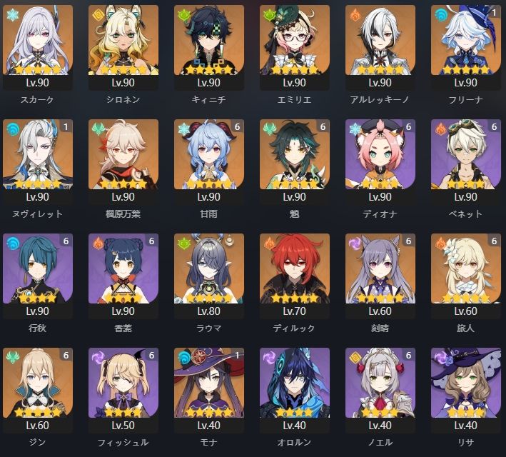 ラウマ スカーク シロネン キィニチ エミリエ アルレッキーノ フリーナ ヌヴィレット 胡桃 蒼耀 ルミドゥースの挽歌 赤月のシルエット 若水