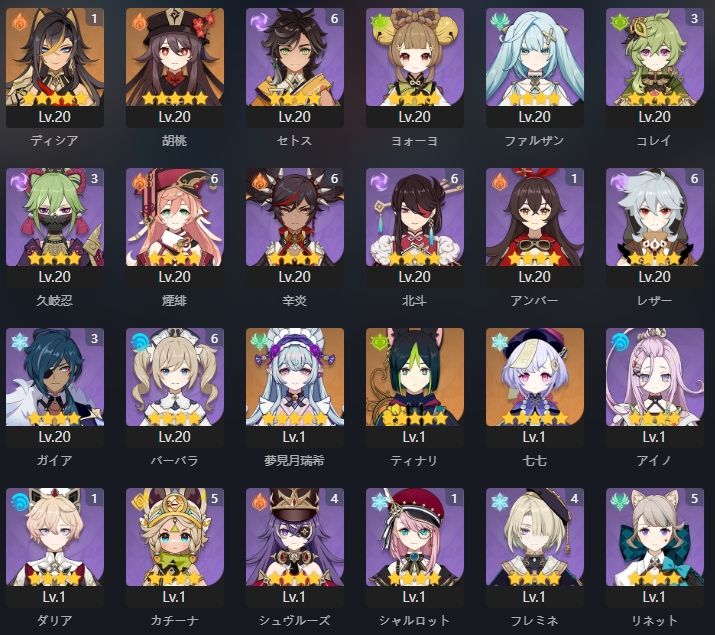下記のようなキャラクター・武器を所持しております。(一部抜粋)