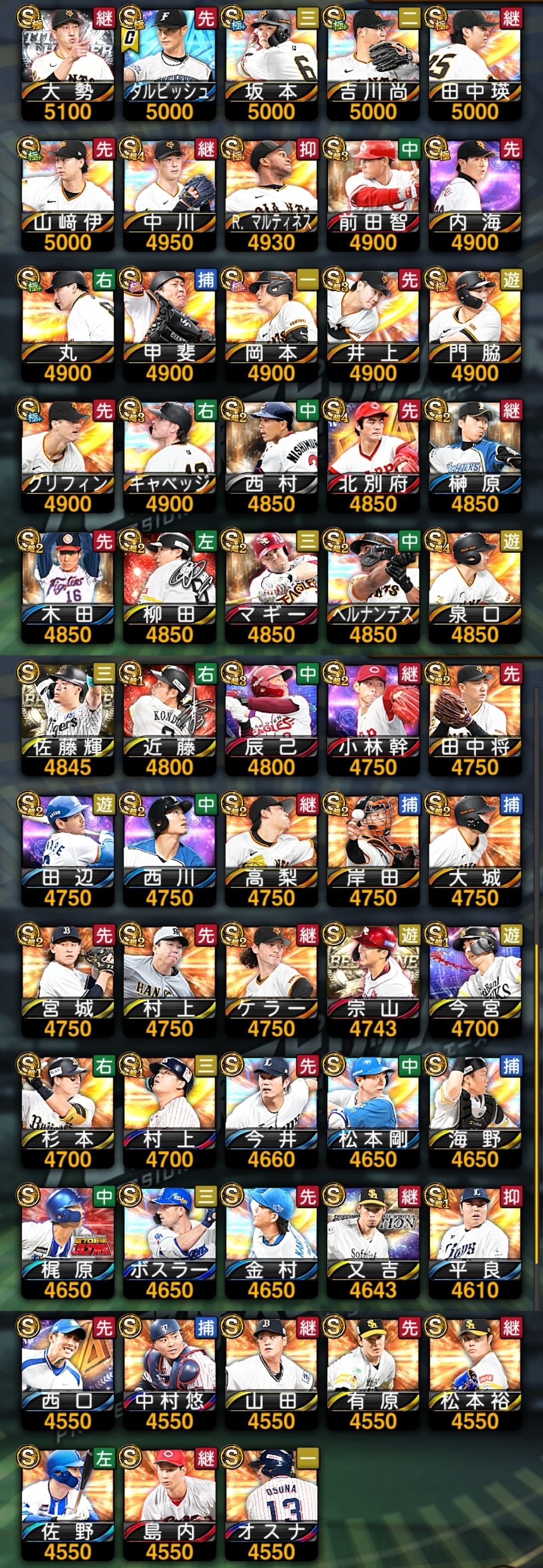 アカウント特定防止といった観点から、主な選手を抜粋して記載させていただいております。
