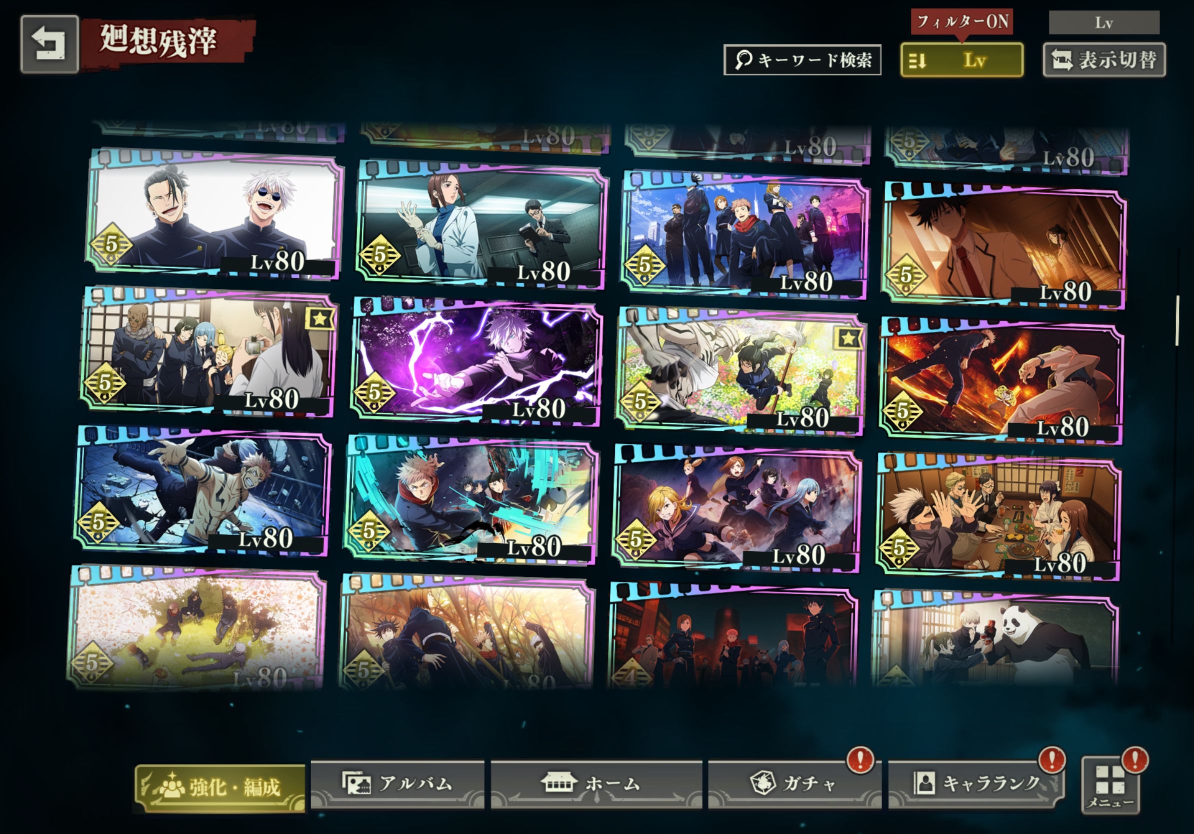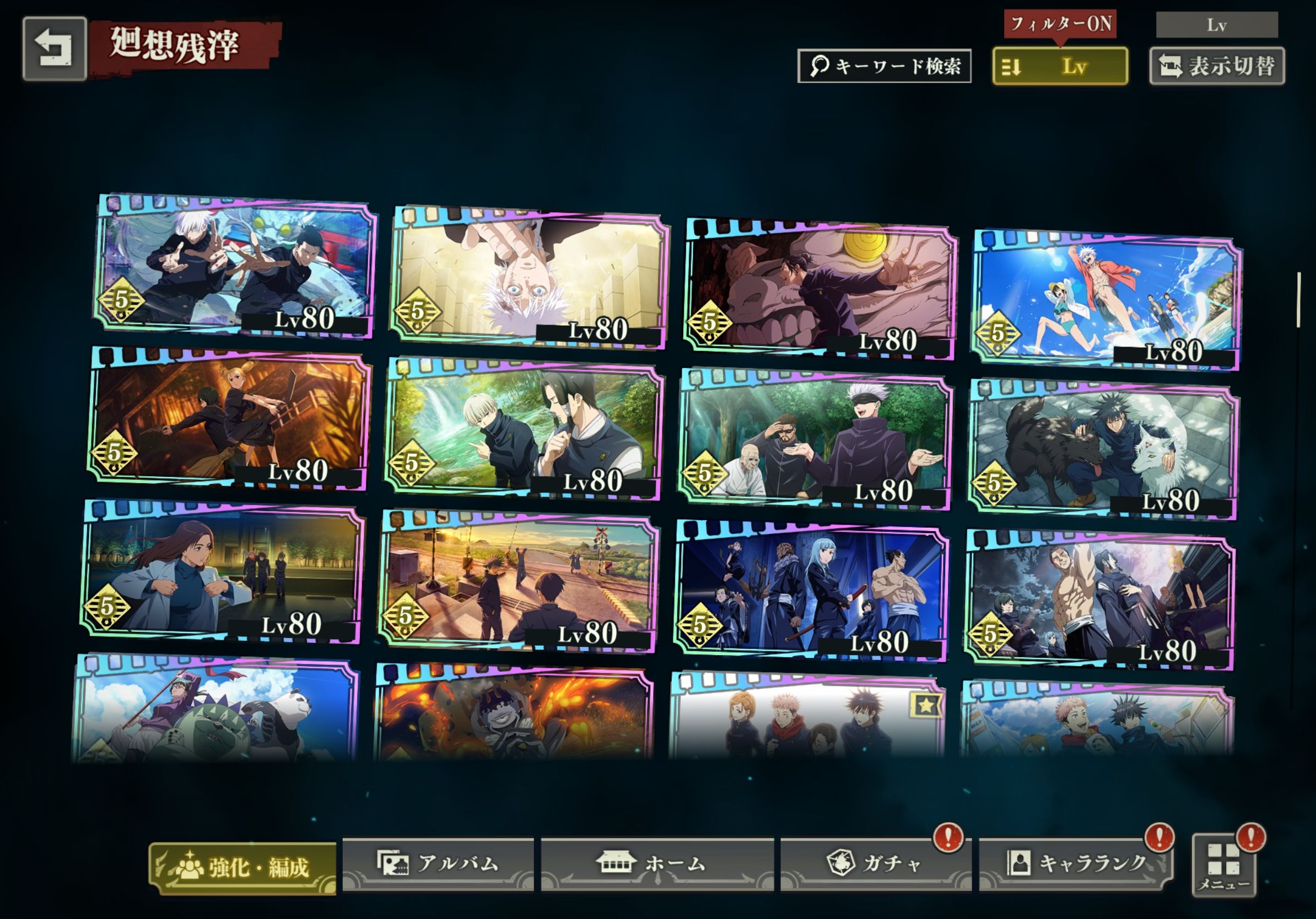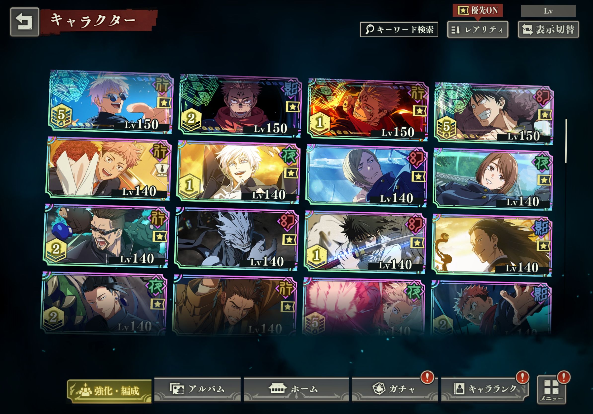 育成度・手持ちともに非常に高く、行/夜/影/幻パーティを全て編成可能です。
