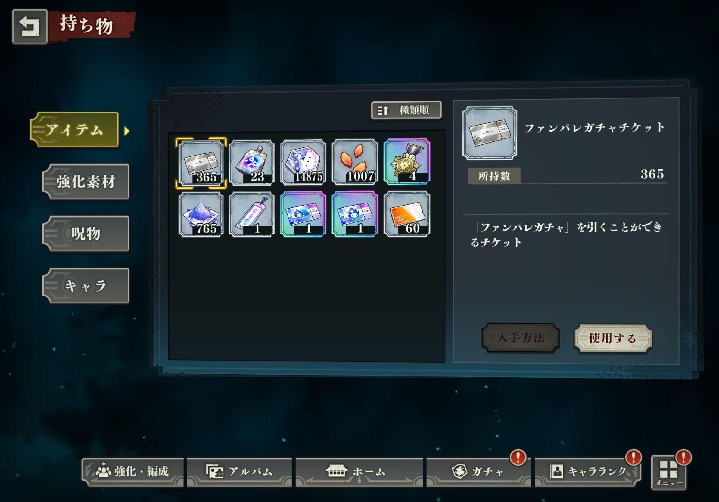 ・強残滓を基本的に所持