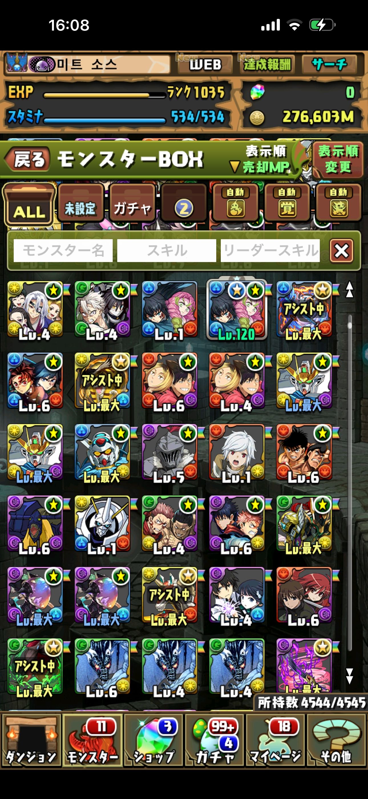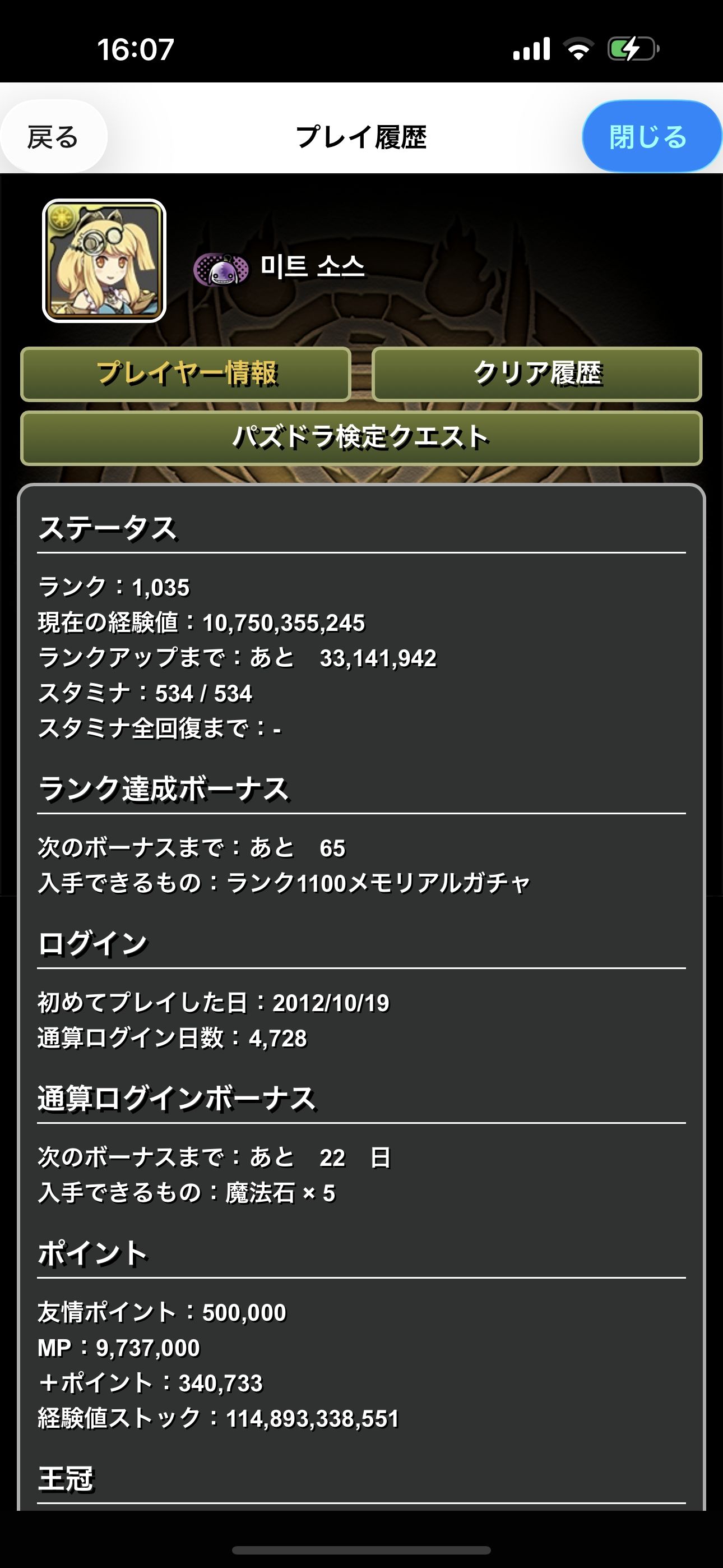 アカウントレベル:1035