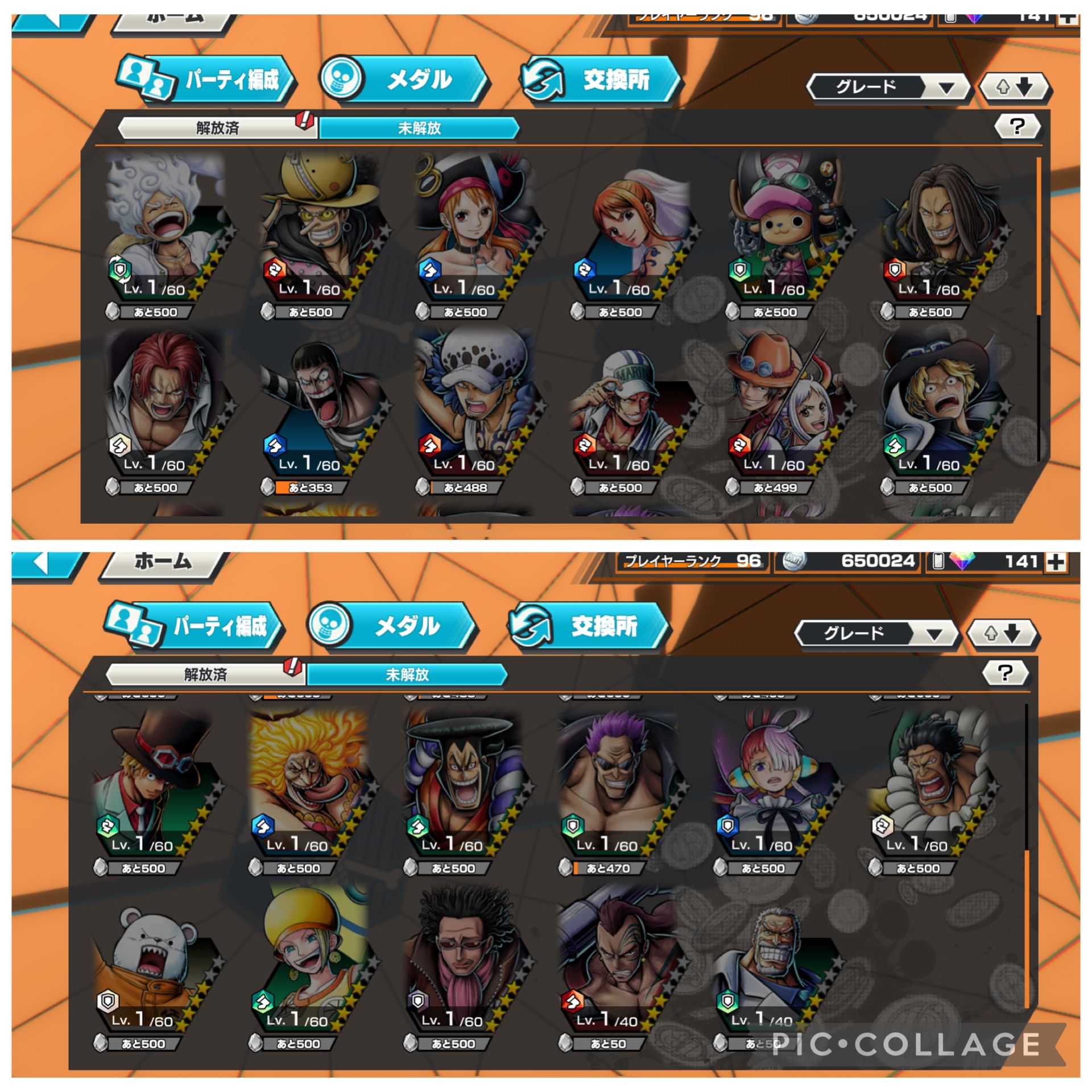 最新超フェスの黒髭もレベル100になっています。黒髭用のメダルも完成済。その他メダルも王道の物はある程度完成しています。ハンコ3種、カイドウ3種、ルフィ3種etc