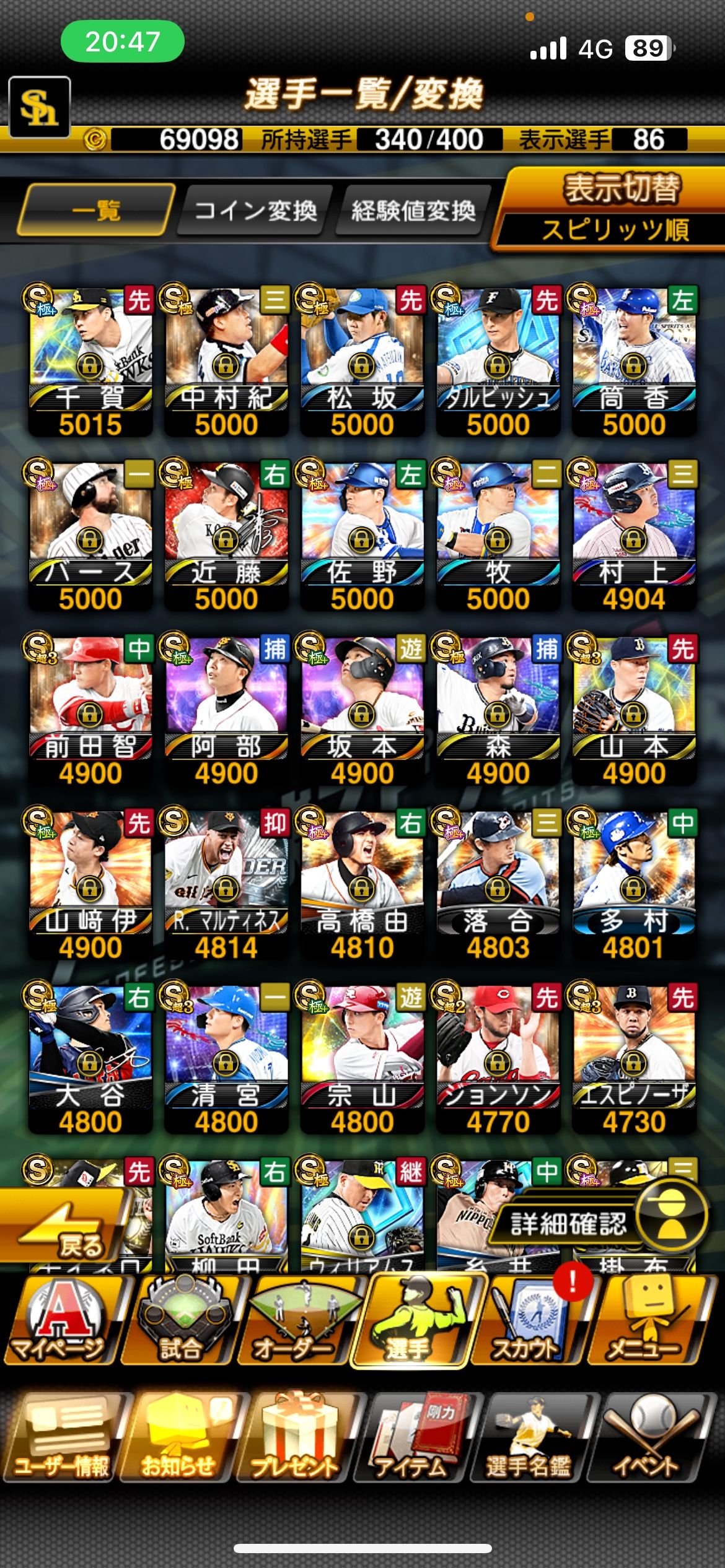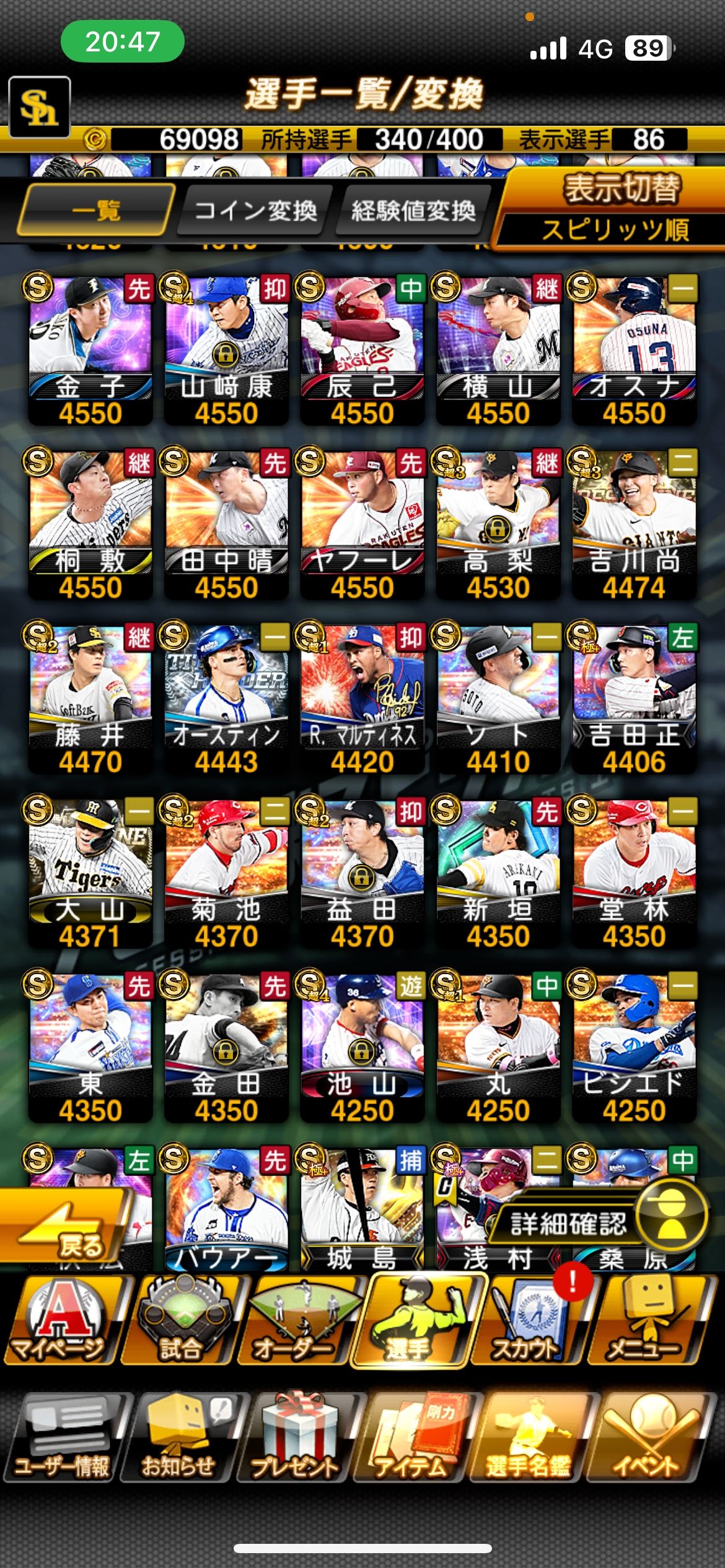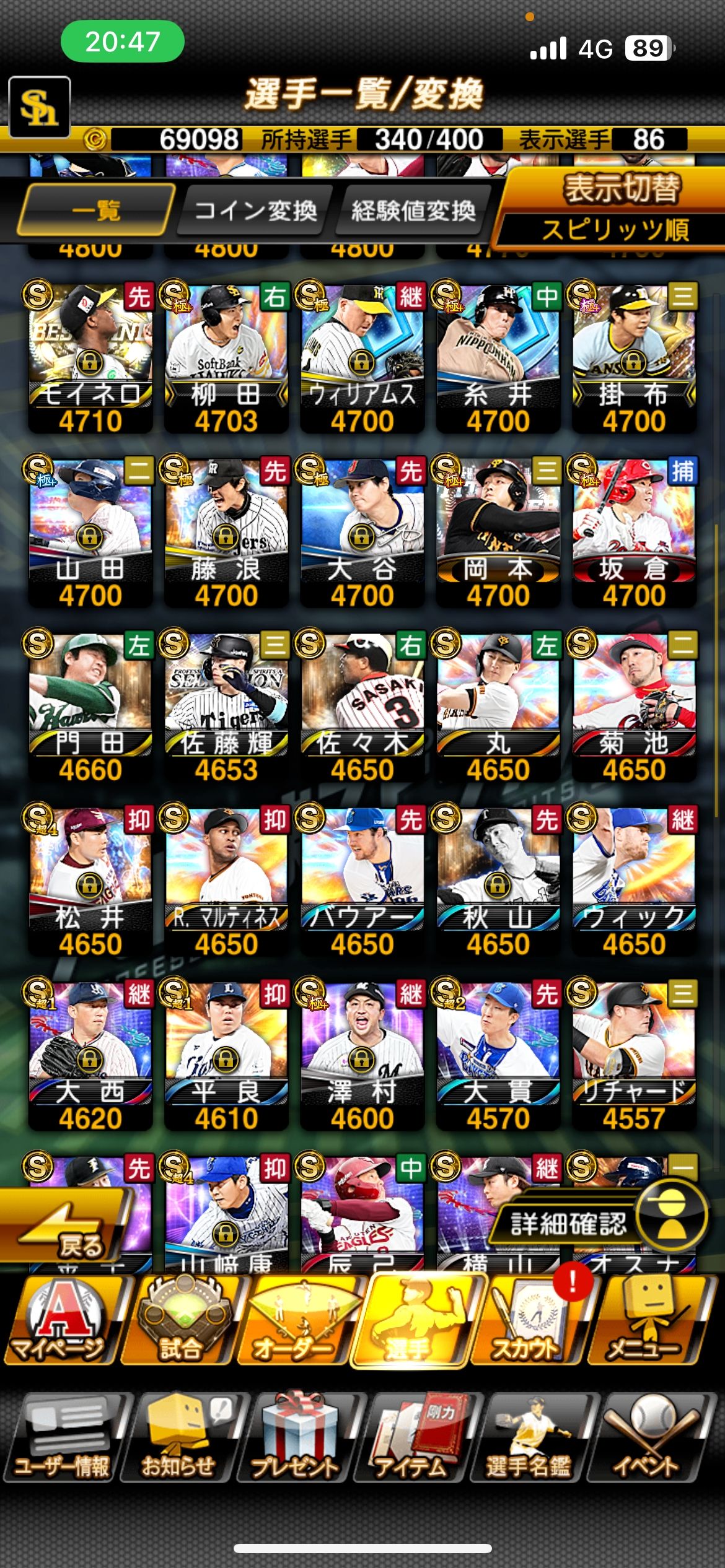 | ゲーム名 | プロスピA |