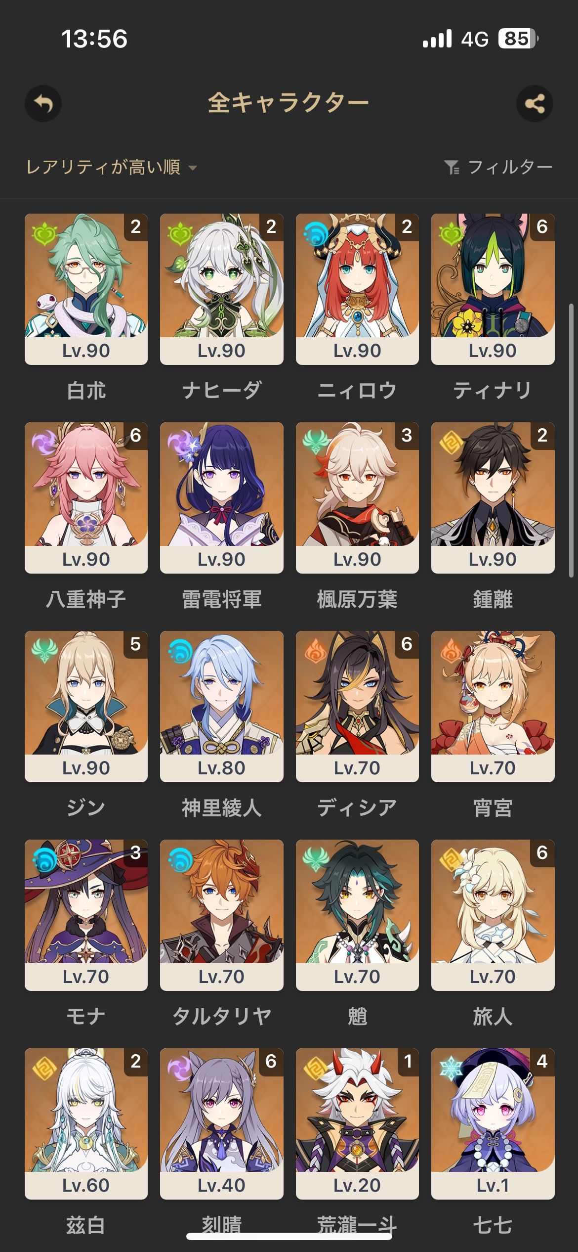 ジン、モナ、宵宮、綾人、タルタリヤ、魈、七七、ディルック、綾華、一斗、雷電