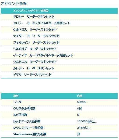 引退した一般プレイヤーから、直接マツブシが買取したアカウントとなります!