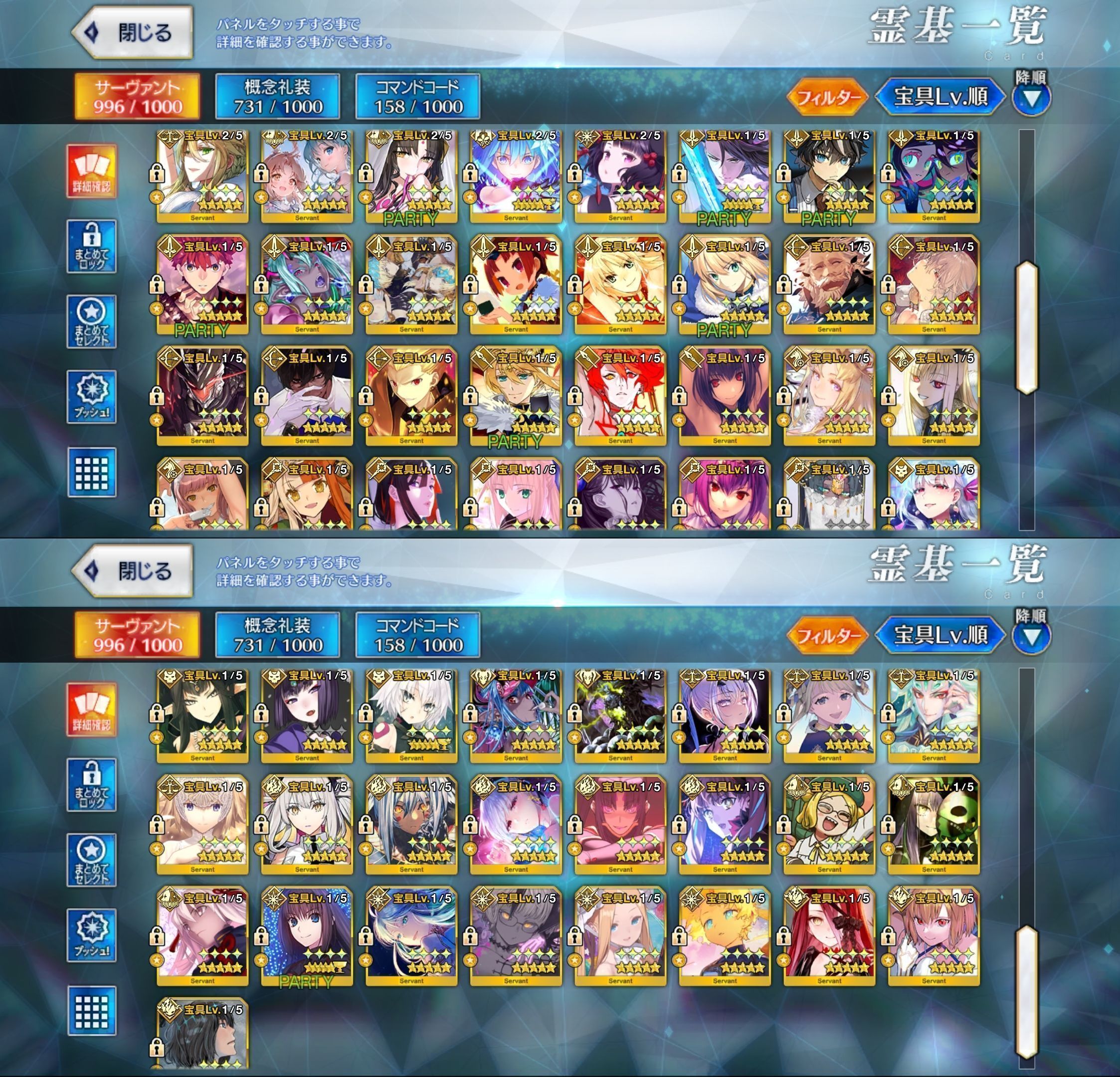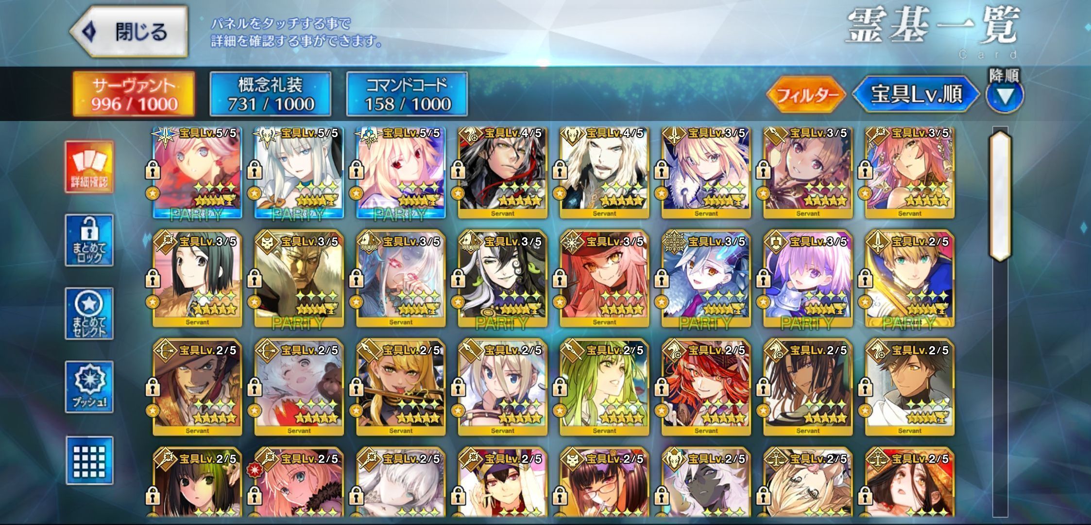 重複分は宝具強化に使用しているため、累計入手数=★5サーヴァントの宝具レベル合計値となります。
