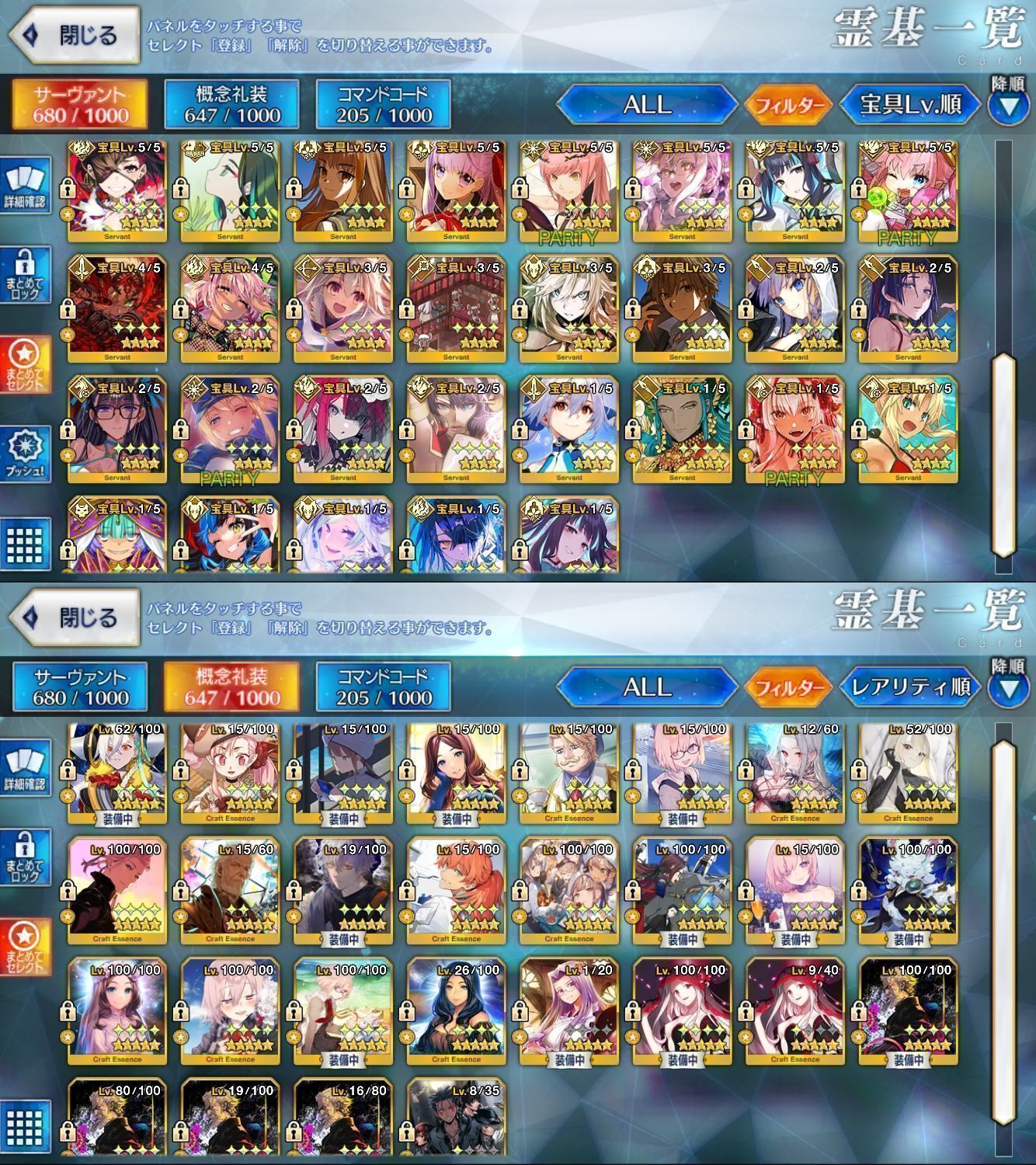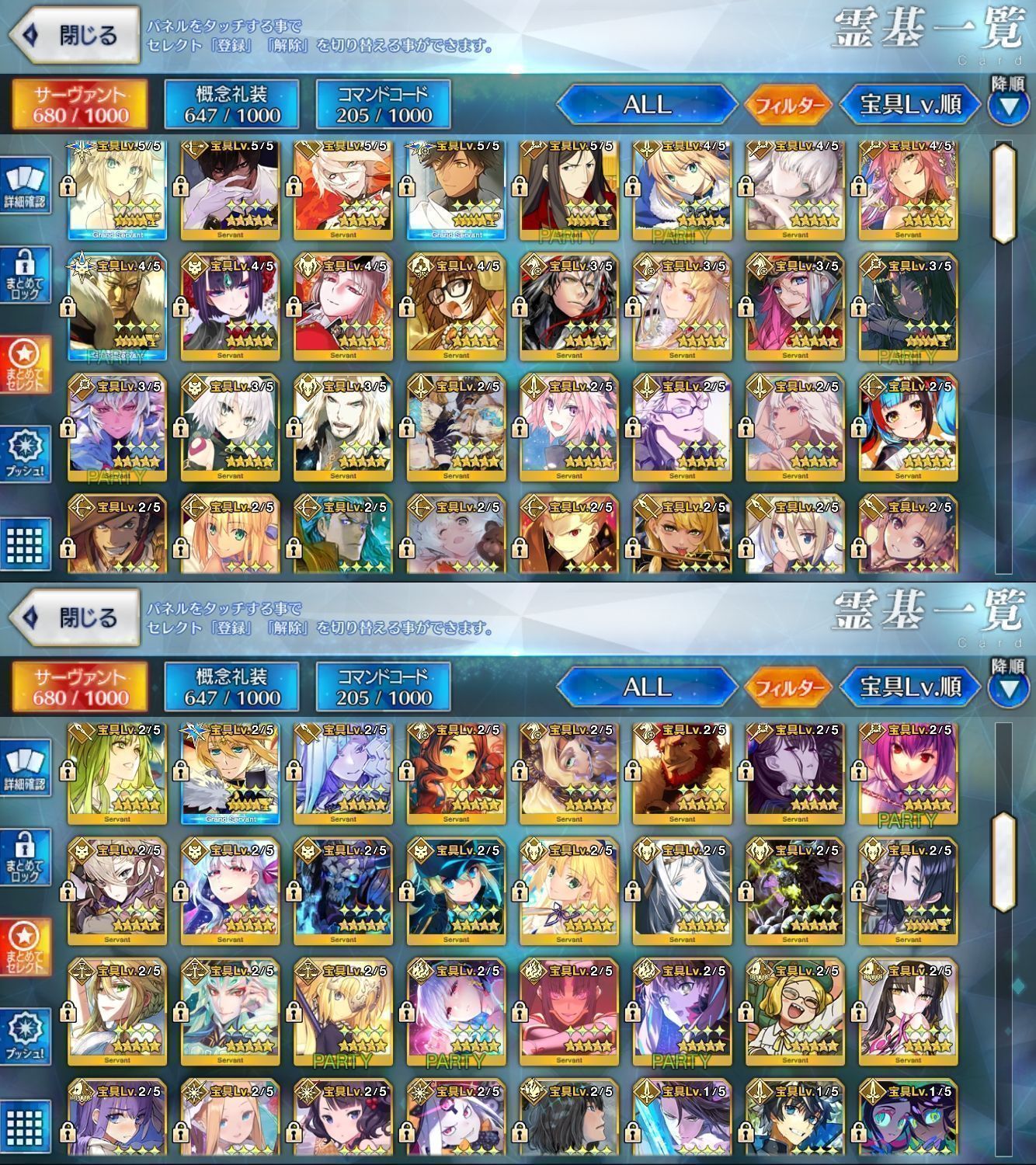 星5サーヴァントの数は累計入手数です。