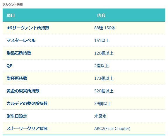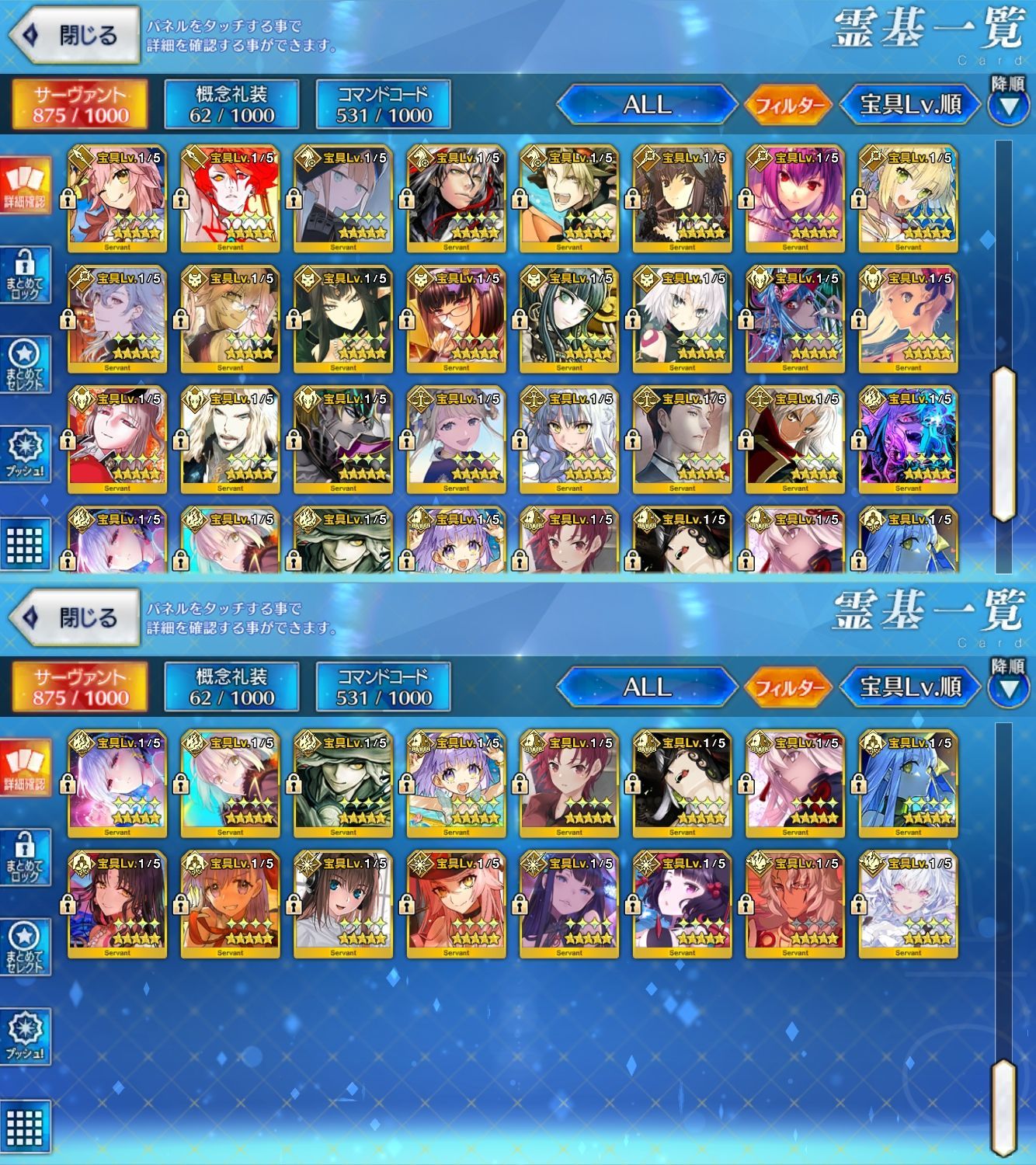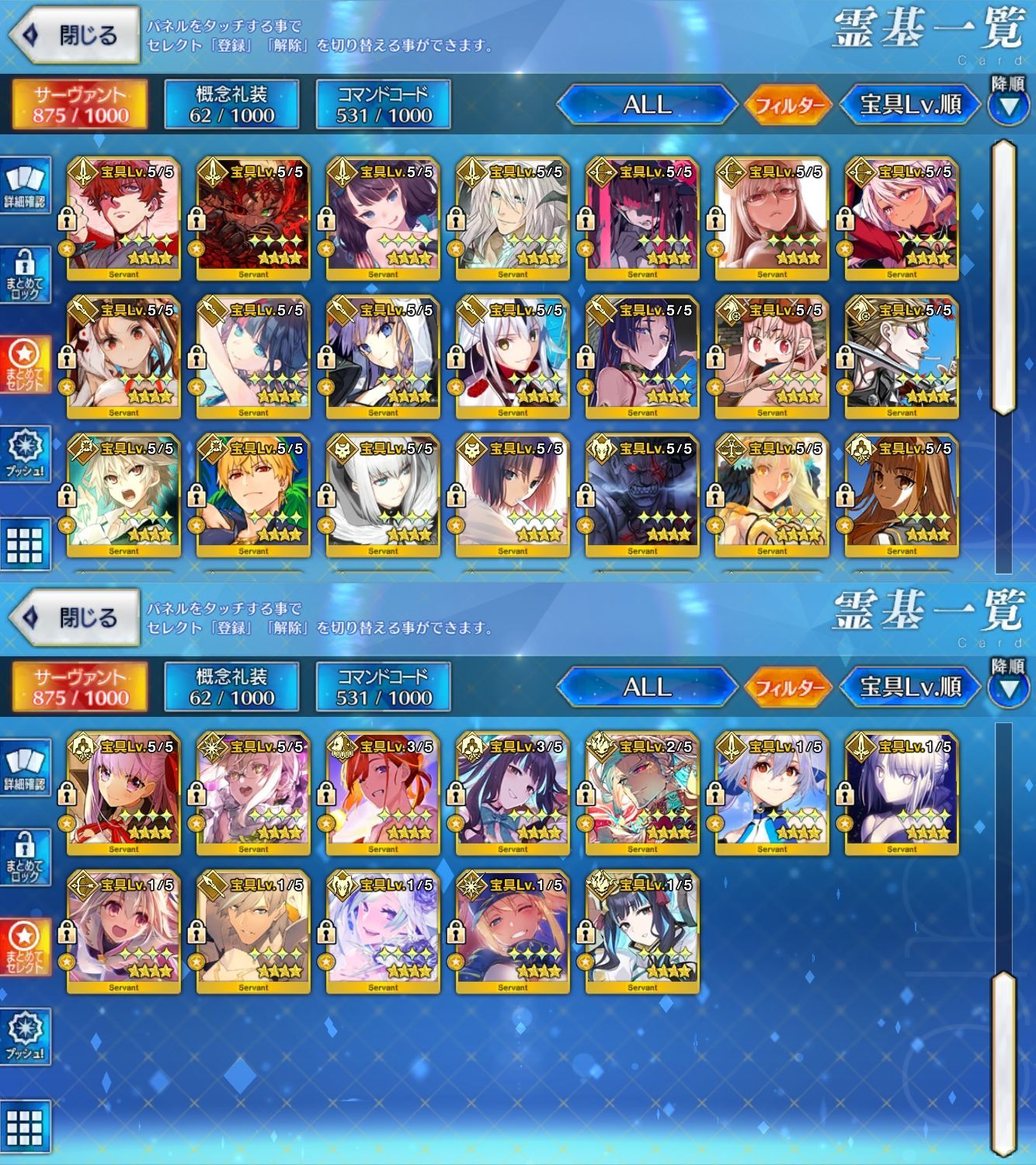 重複分は宝具強化に使用しているため、累計入手数=★5サーヴァントの宝具レベル合計値となります。