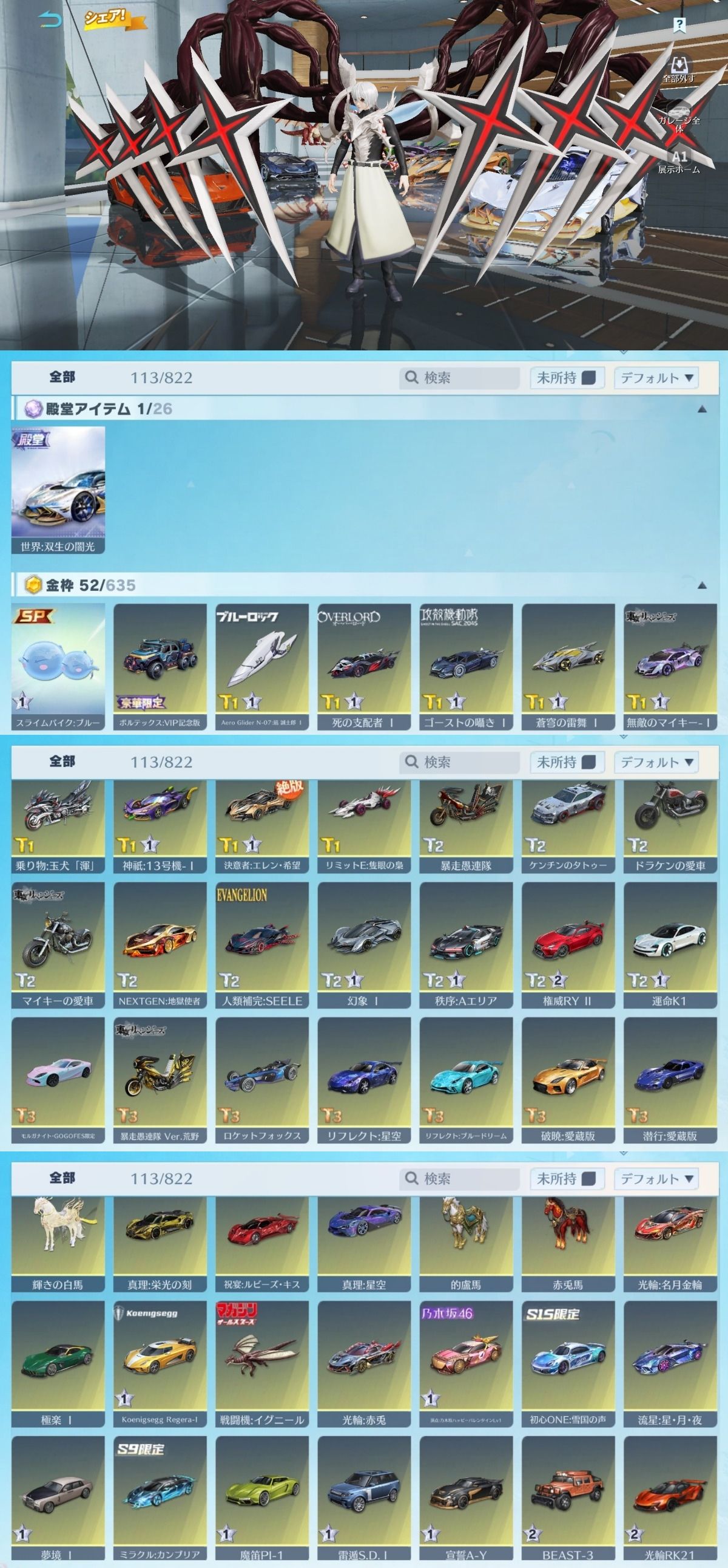 光輪RK21(オレマク) 世界:双生の闇光 飛行服:方天画 飛行服:コーン登場 パラシュート:星・月・夜 オブジェ:人類補完 オブジェ:初号機アーミングツリー 金木研II 佐野万次郎 虎杖悠仁 釘崎野薔薇 五条悟 ミカサ リヴァイ