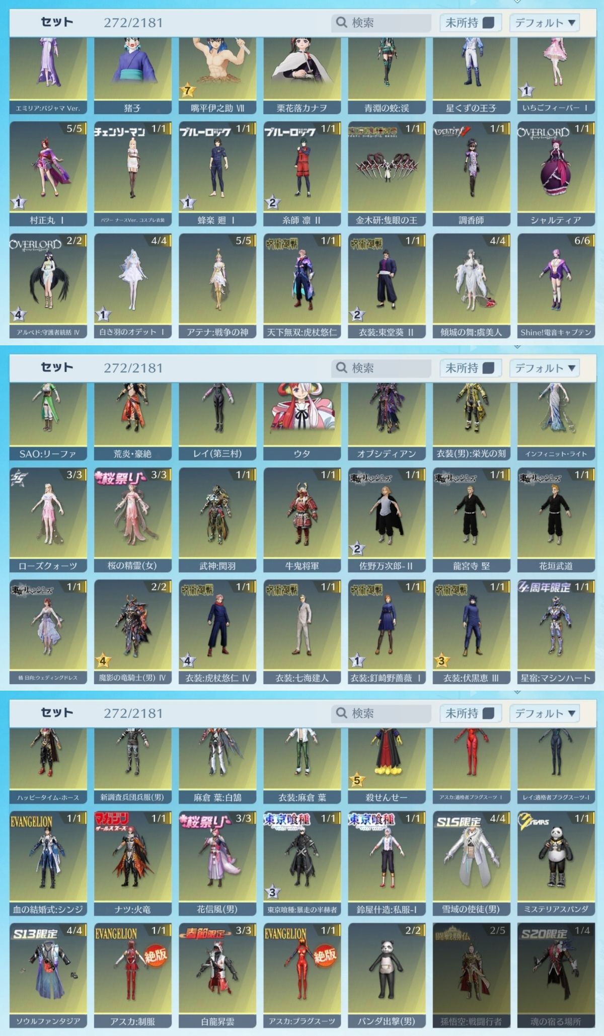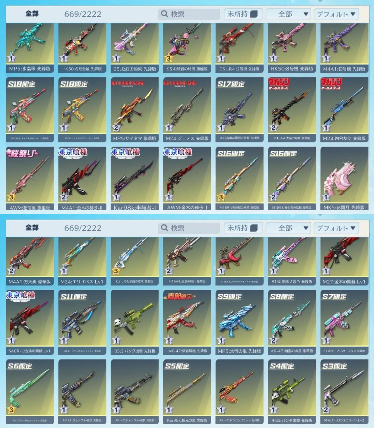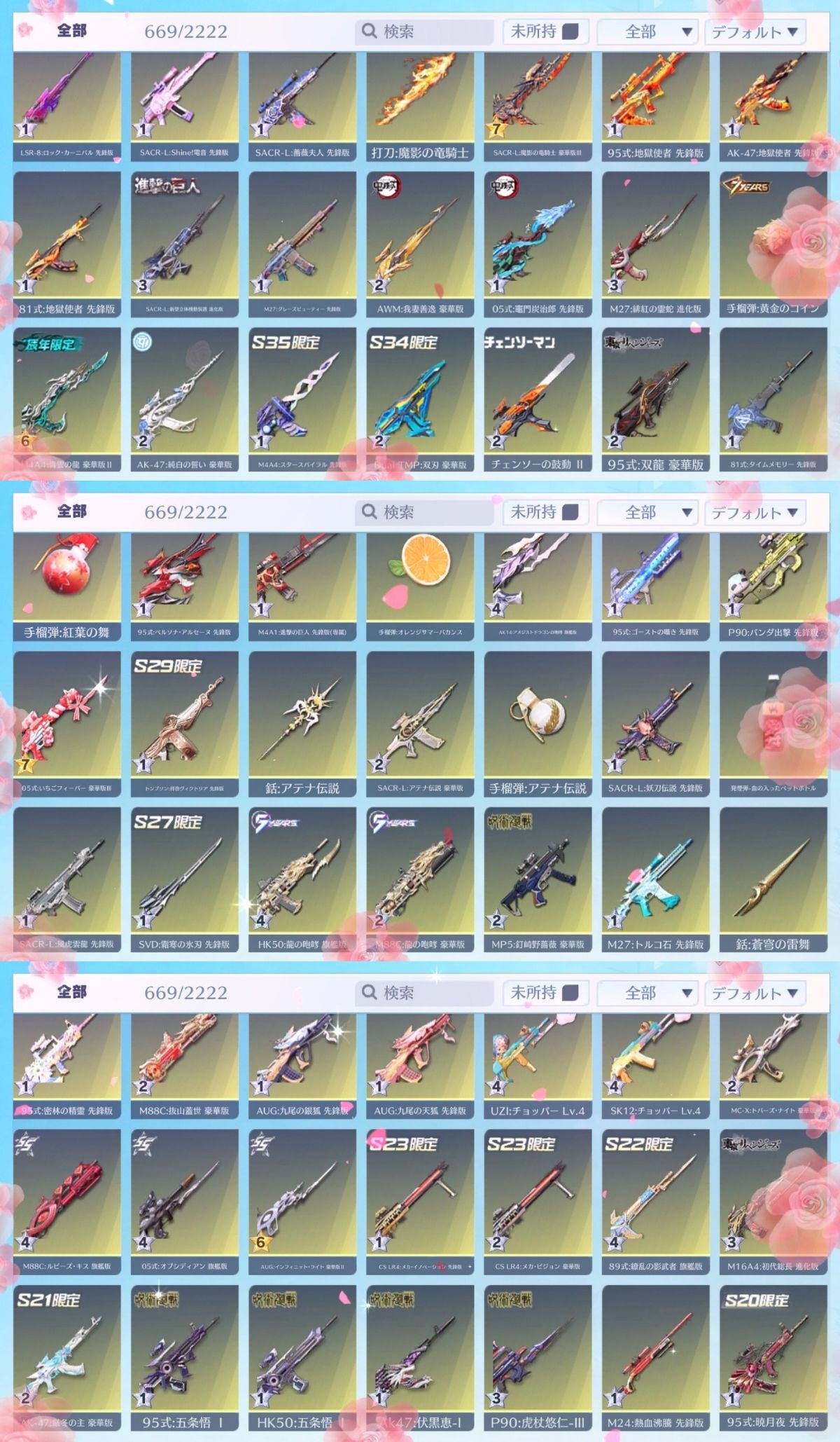 アカウント特定防止といった観点から主なスキンを抜粋して掲載しております。