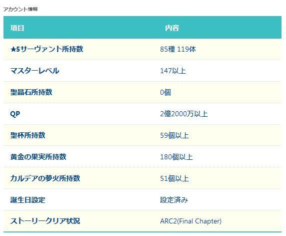 重複分は宝具強化に使用しているため、累計入手数=★5サーヴァントの宝具レベル合計値となります。