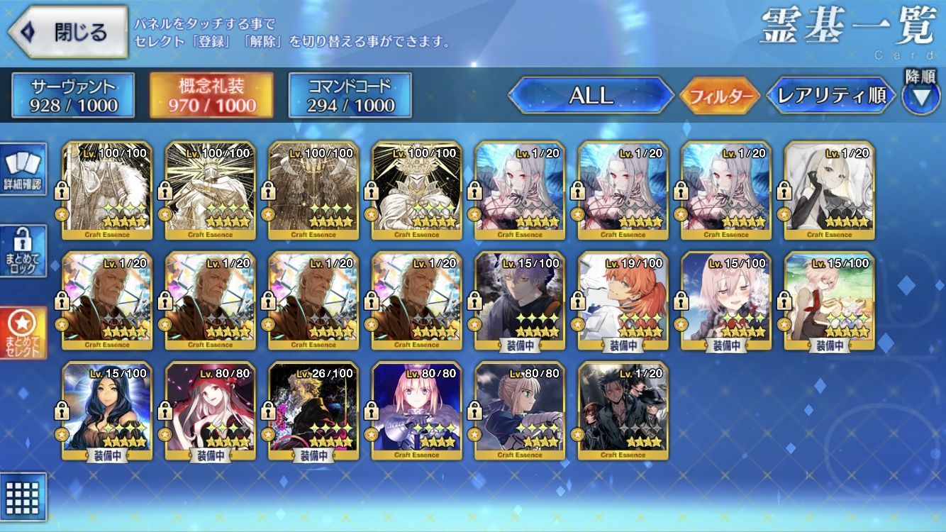 アカウント特定防止といった観点から主なサーヴァントを抜粋して掲載しております。
