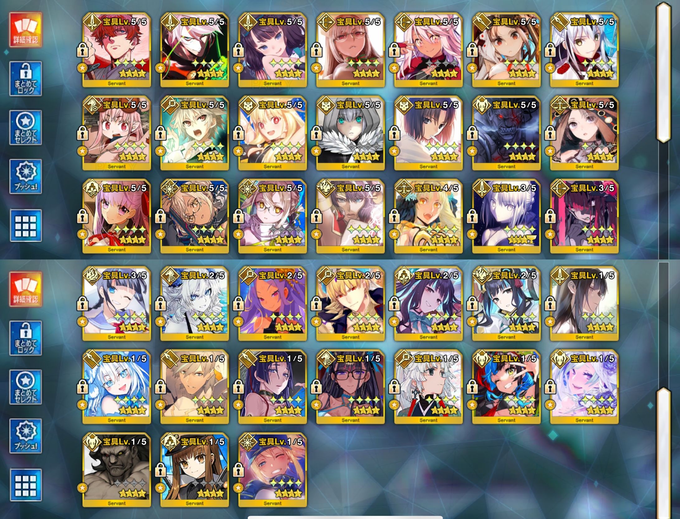 重複分は宝具強化に使用しているため、累計入手数=★5サーヴァントの宝具レベル合計値となります。