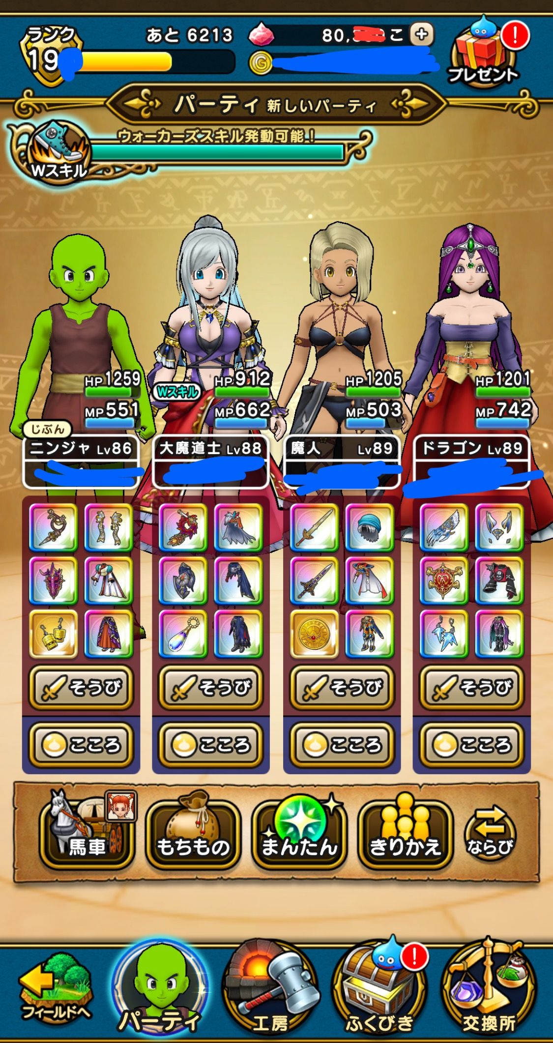 主要武器が揃っているアカウントです。最近時間が無く、プレイできなくなってきたので、DQウォークを楽しんでいきたい方にお譲りできたらと思っております。