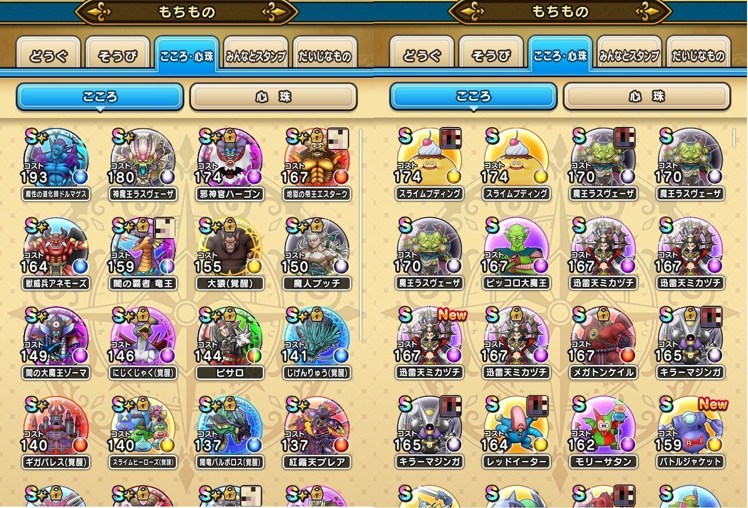 アカウント特定防止といった観点から、主な武具・こころを抜粋して記載させていただいております。