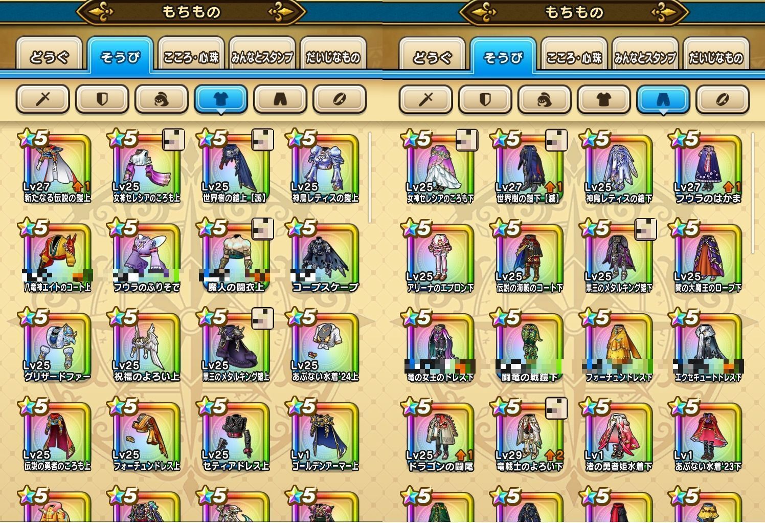 下記のようなそうびを所持しております。(一部抜粋)